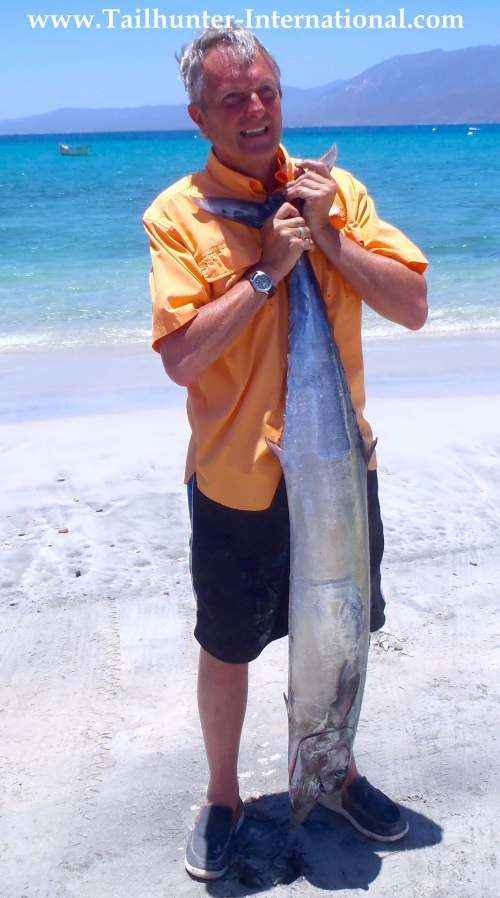 Stacy Florence from Kansas with the right kind! Good wahoo for our amigo on the beach at Bahia de los Muertos.