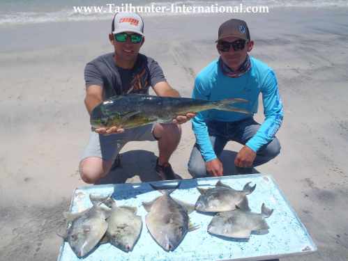 Verda Boyd has a nice variety of fish for the day with Captain Victor and Carlos including dorado, a big pompano, triggerfish, a barred pargo and a palometa! All great eating!