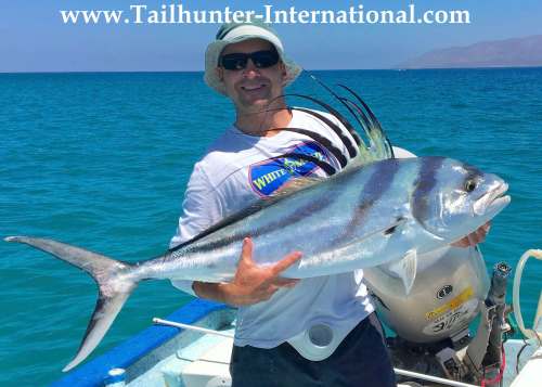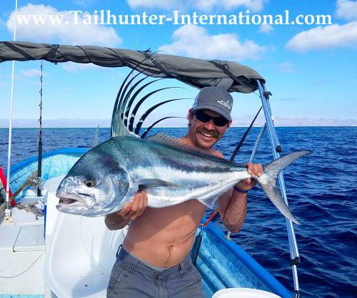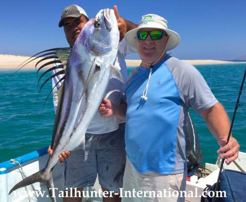 New Jersey, Matt Lederer, has a pretty rooster. Cerralvo Island in the background. Fish was released.