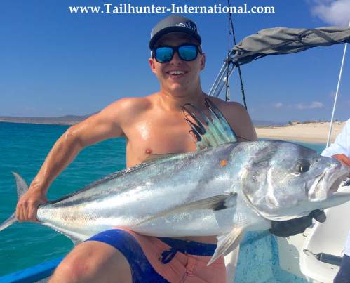 Happy guy, Taylor Westberg’s first rooster is a slug! Right off the lighthouse at Las Arenas! Taylor is from Copperopolis CA and visted us for the first time. Taylor released the fish.