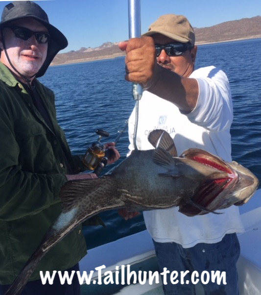 Trophy grouper in the boat! Don’t see many of these, not because they’re not around, but getting them out’ve the rocks is quite a task. Marc Garrison from Chicago staying there in Muertos at Rancho Costa.