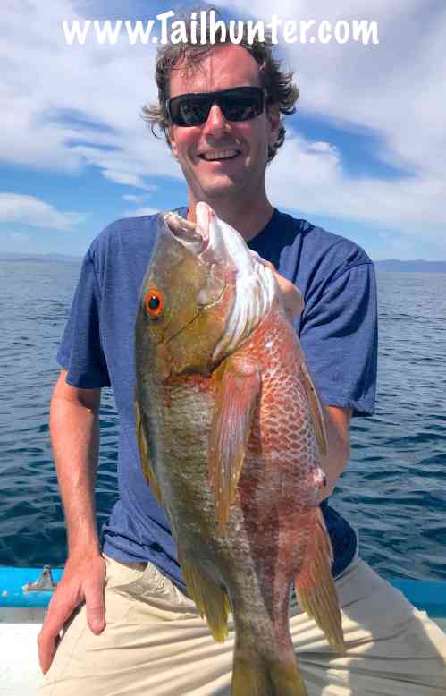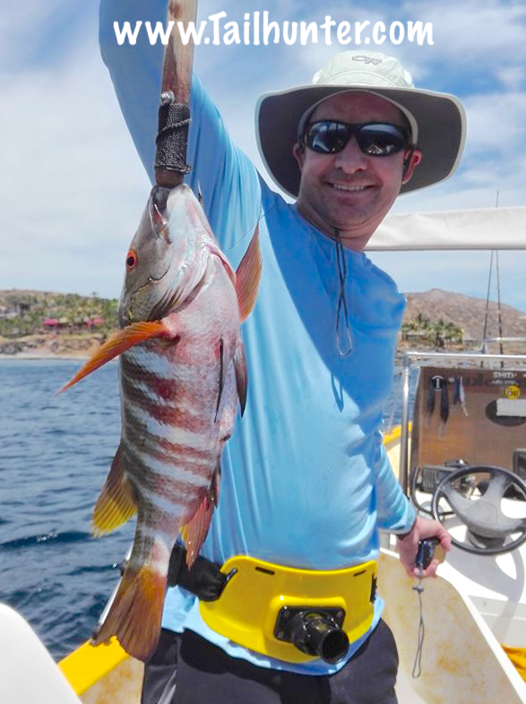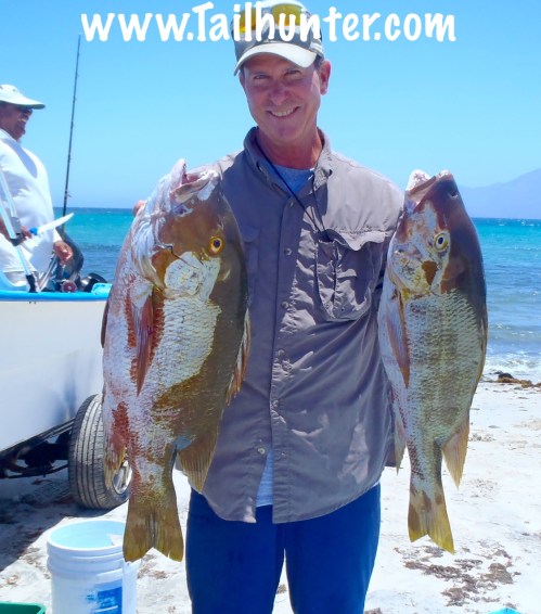 Arizona team of Rob and son, Craig Hoffman rapped this gorgeous dog-tooth snapper out’ve the rocks near Punta Perrico.