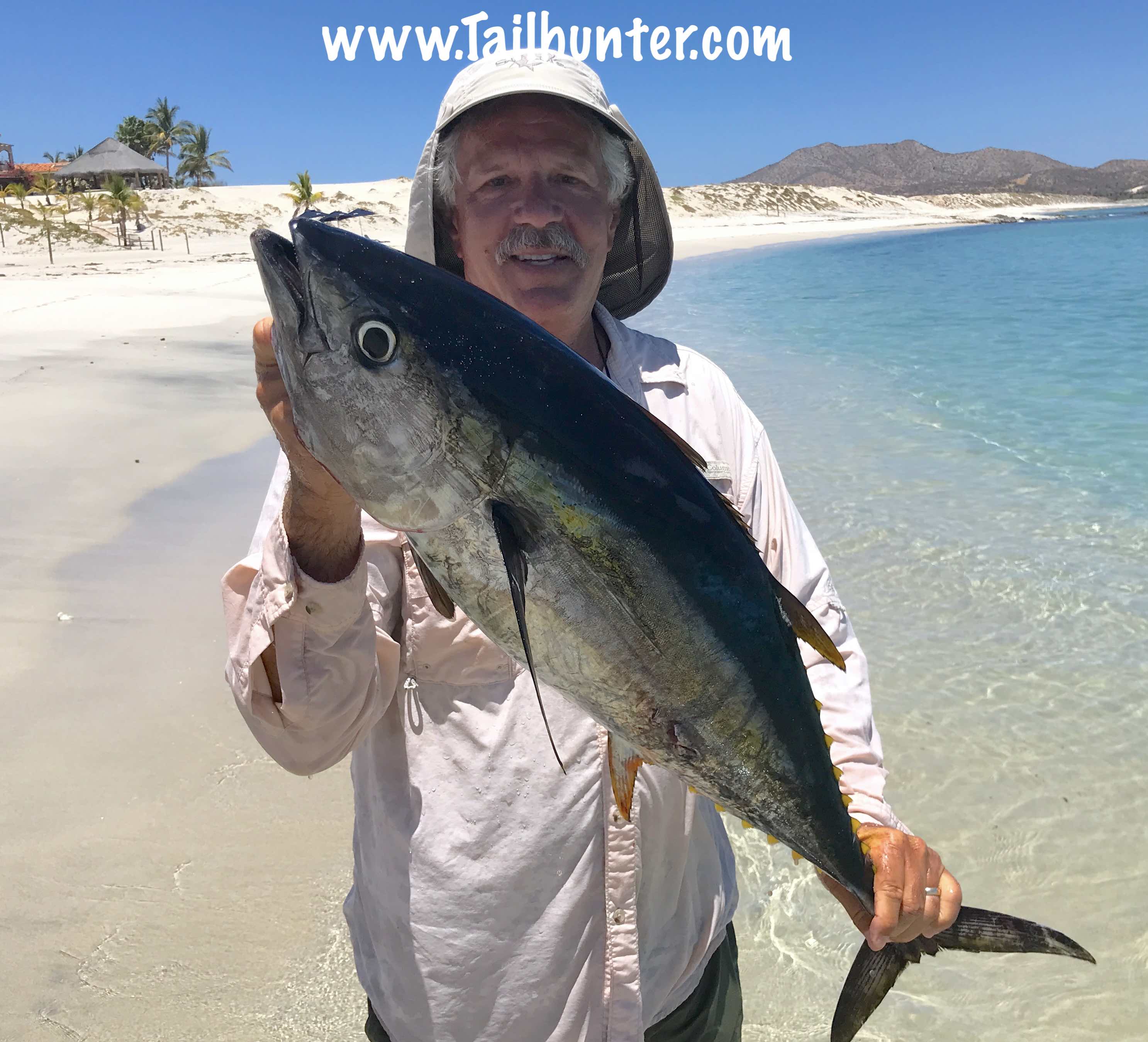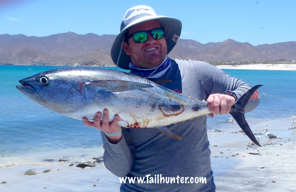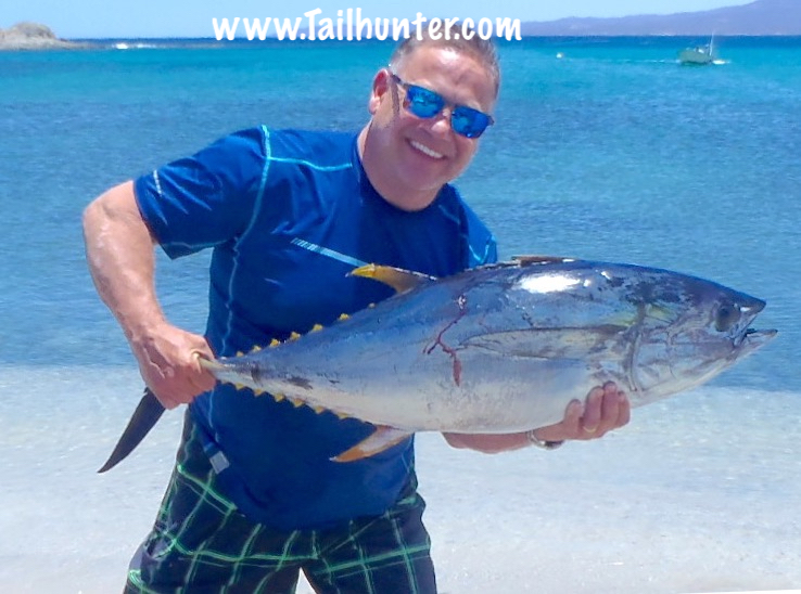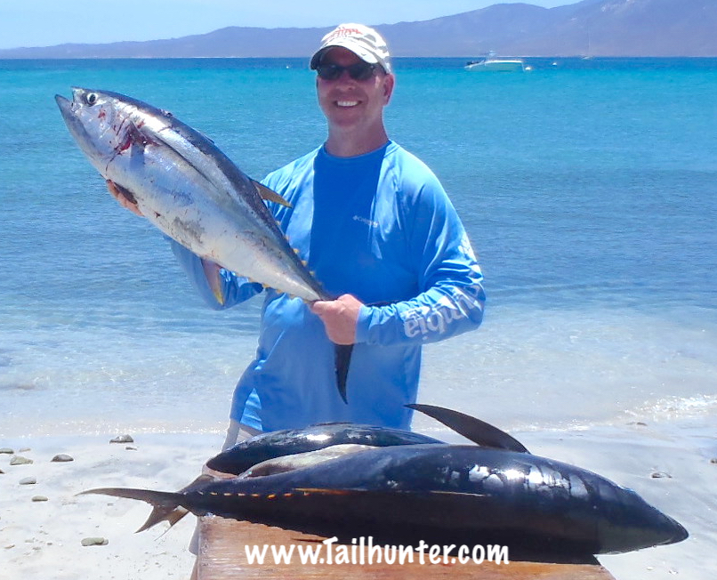 Colorado in the house! Ed Eversol with his first tuna and a great pose on the beach at Bahia Muertos. Chunky yellowfin!