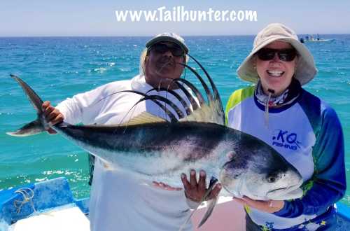 Our first “official” roosterfish of the season! (No one has really been asking to fish them so far until this week!). But Diane Kosnosky from Arlington WA with Captain Victor picked up this 40-pound class rooster on the line then released it! They also lost two others!