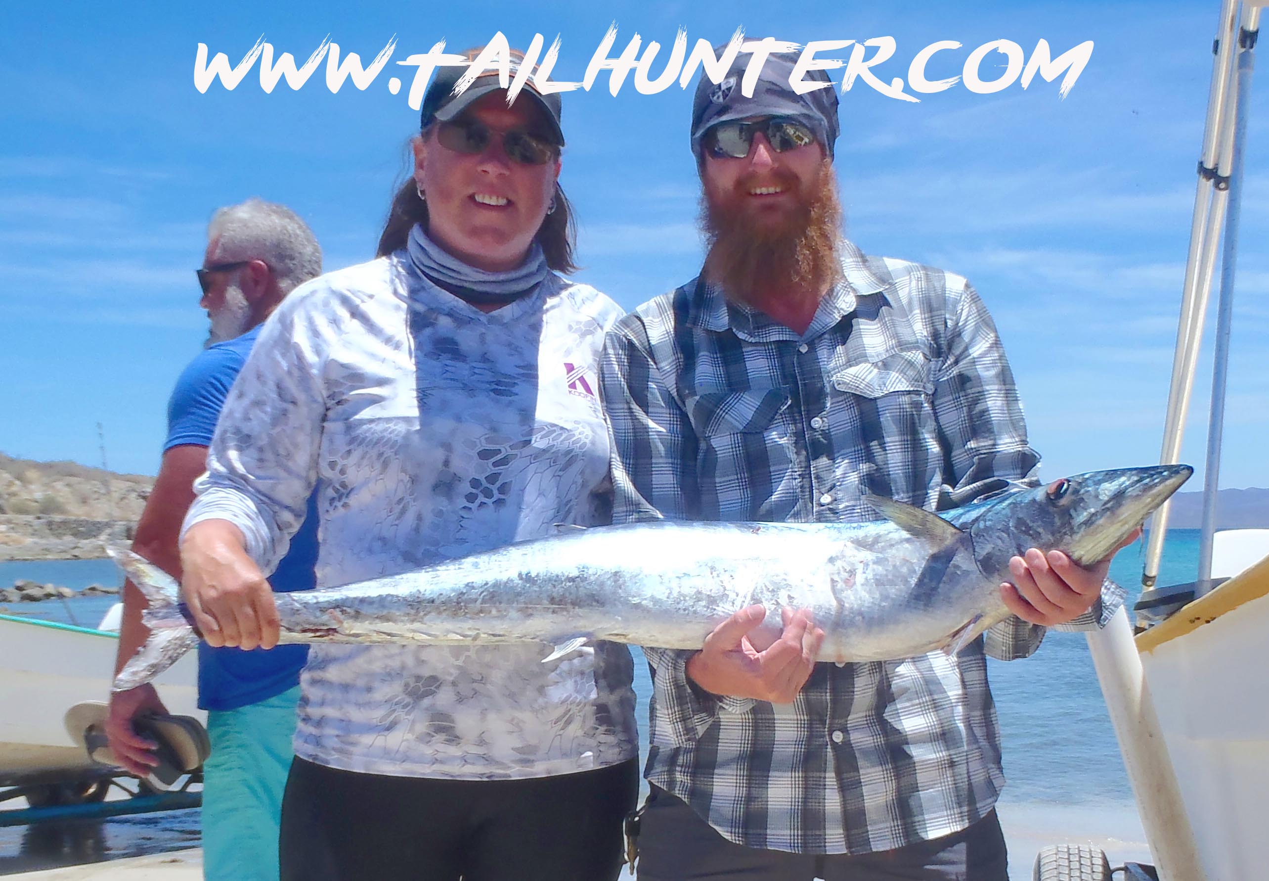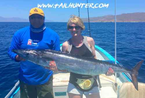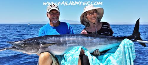 Oregon friends just had one day to visit us but managed to hang a nice wahoo at the end of the week when the bite was diminishing. This is Zeb and Katrina Jensen from Oregon.