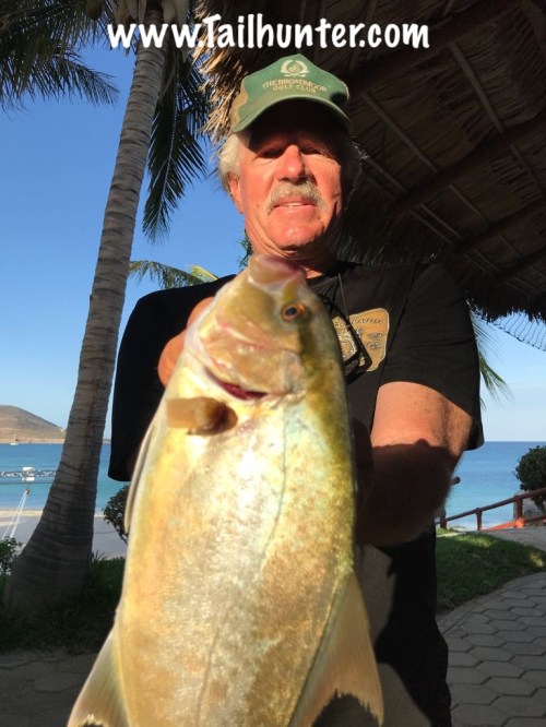 First amberjack showing of the season. This is Dr. Roy Stringfellow showing off his fish while staying at Rancho Costa there at Muertos Bay.