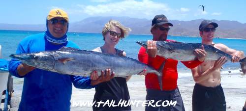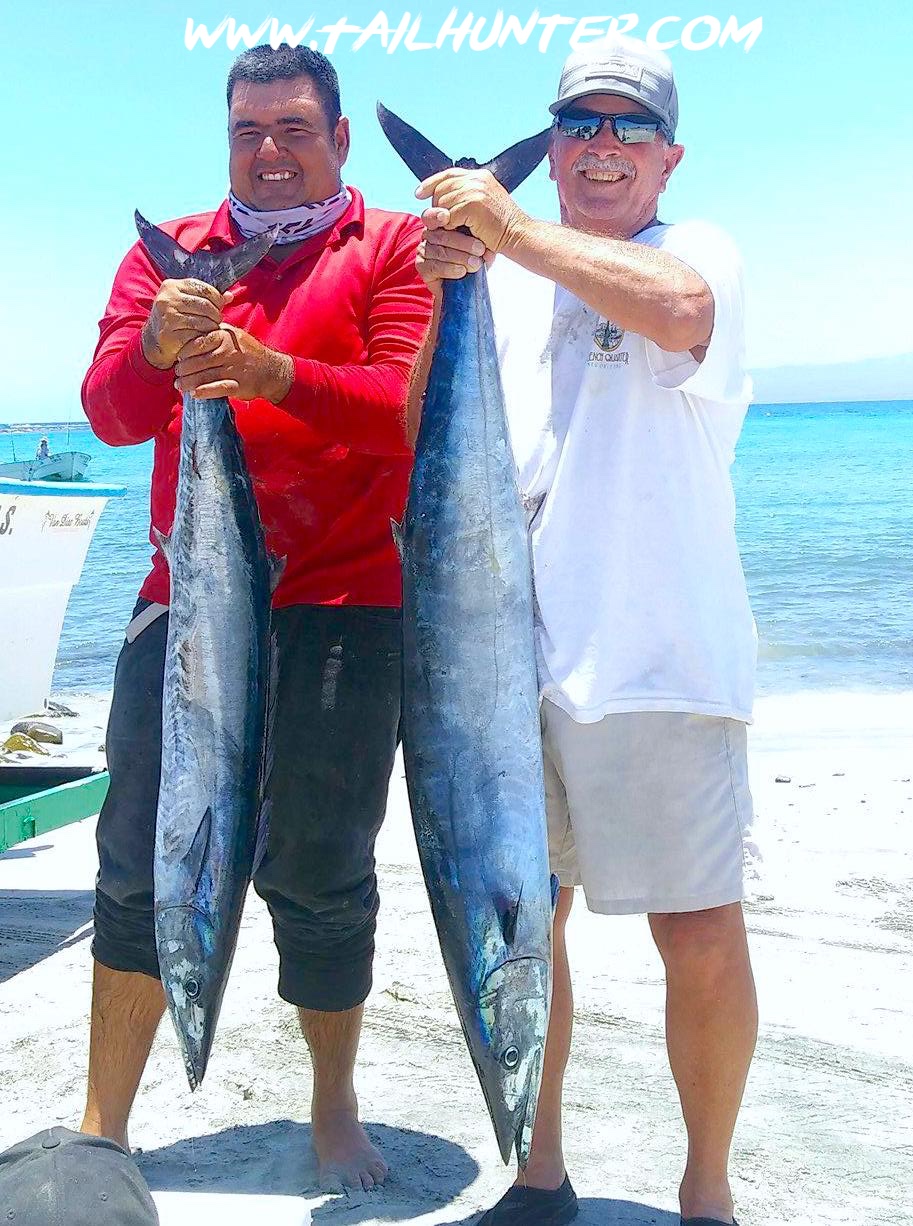 On the beach at Muertos, Captain Gerardo and Steve Ritz with some of that good-eating wahoo. Doubles!