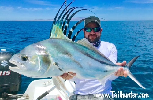 Best week of the year, so far, for roosterfish. Nice fish for Josh Hobgood from San Clemente. His first rooster ever and was fishing with the Tailhunter Fleet out’ve Bahia de los Muertos using live bait. The fish was released.