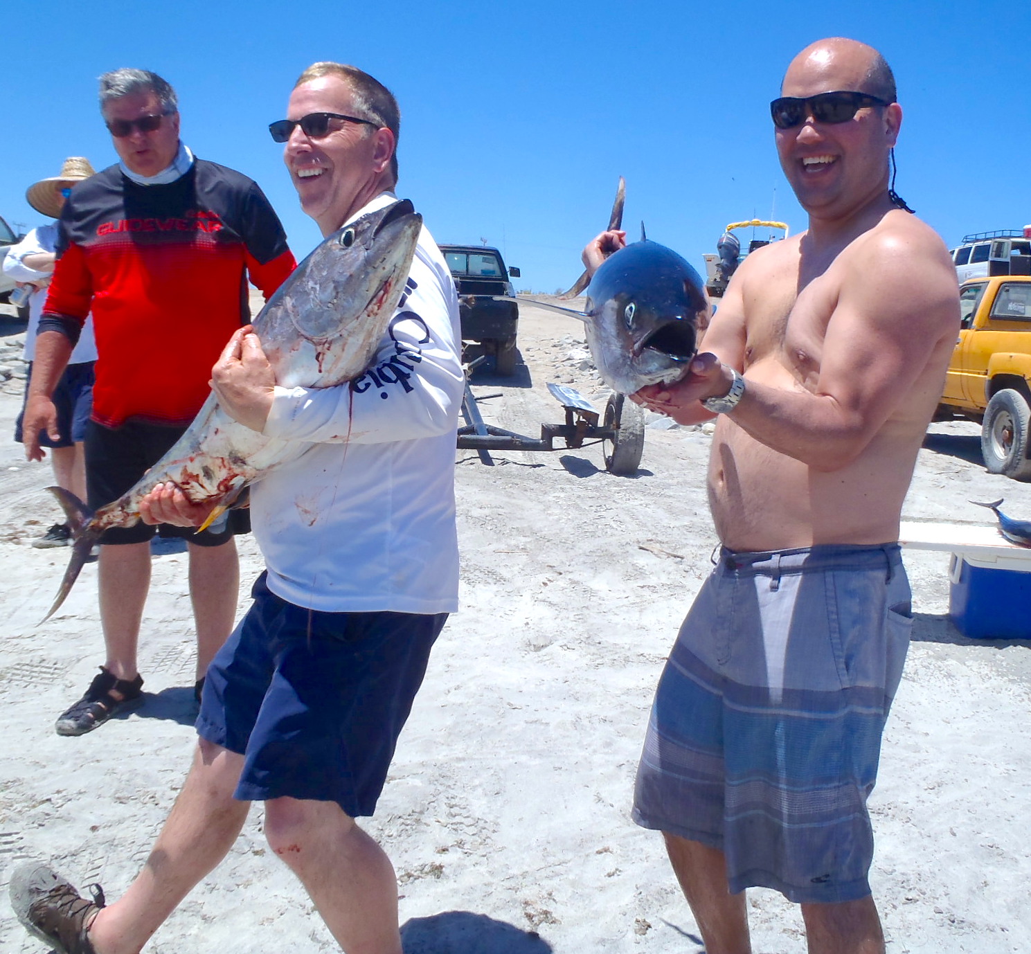Is there another doctor in the house? Doc Gianni Checa from Denver area was one of the funnest guys of the week and holds up another yellowfin tuna on the beach at Muertos Bay.