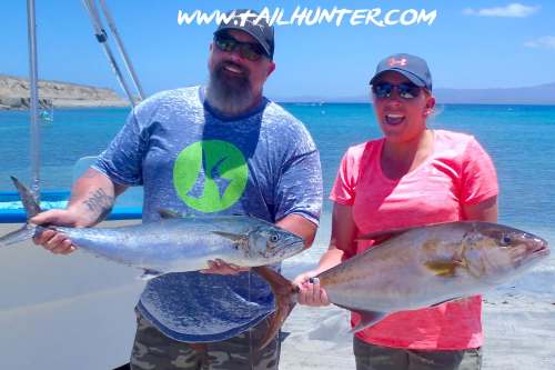 Our buddy, Gary Wagner, owner of Rancho Costa and the famous Giggling Marlin Bar in Cabo with one of several amberjack caught this week.