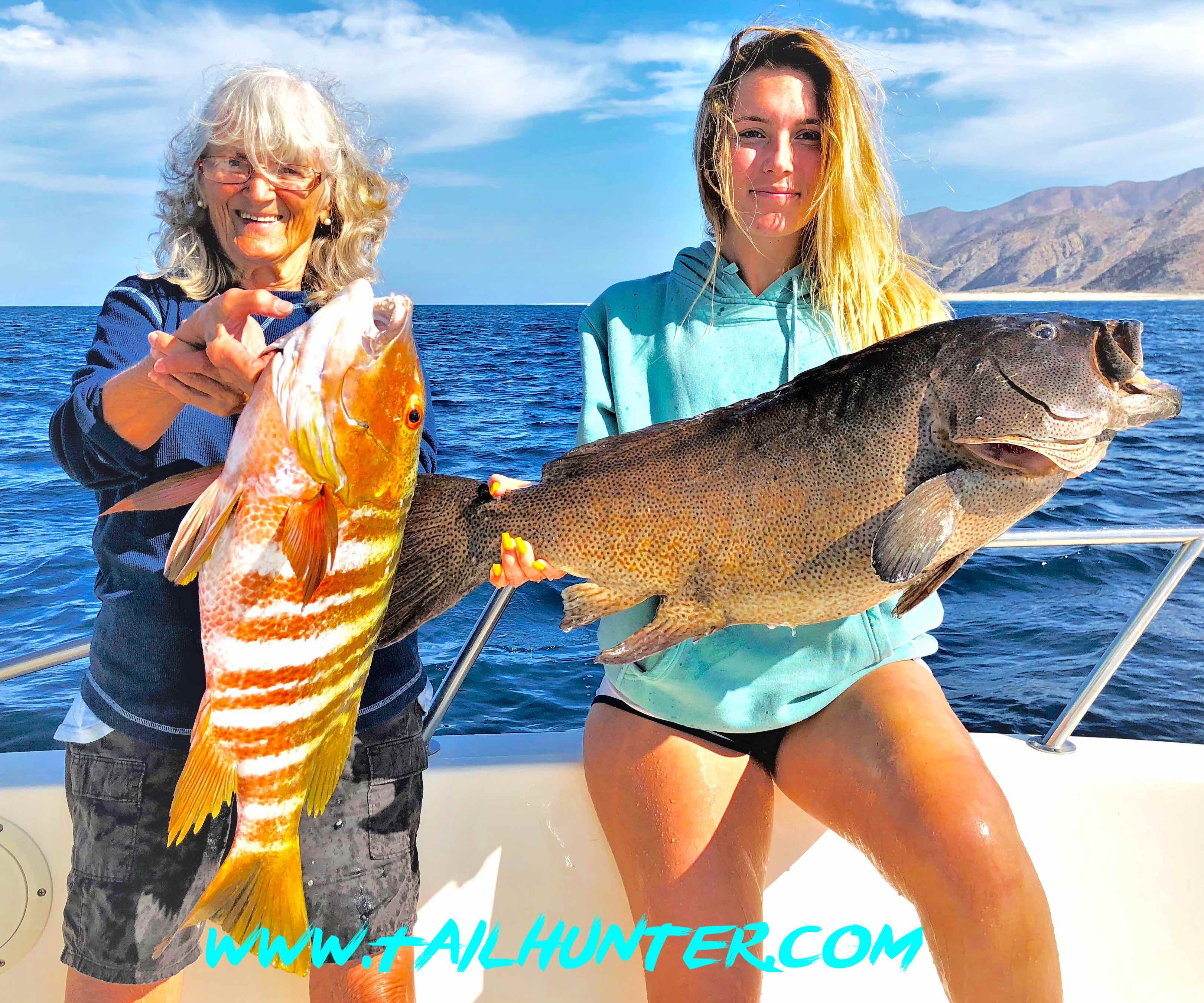 Taylor Murphy with a huge cabrilla and her grandma who’s no slouch either and a big time barred pargo! Check those colors!