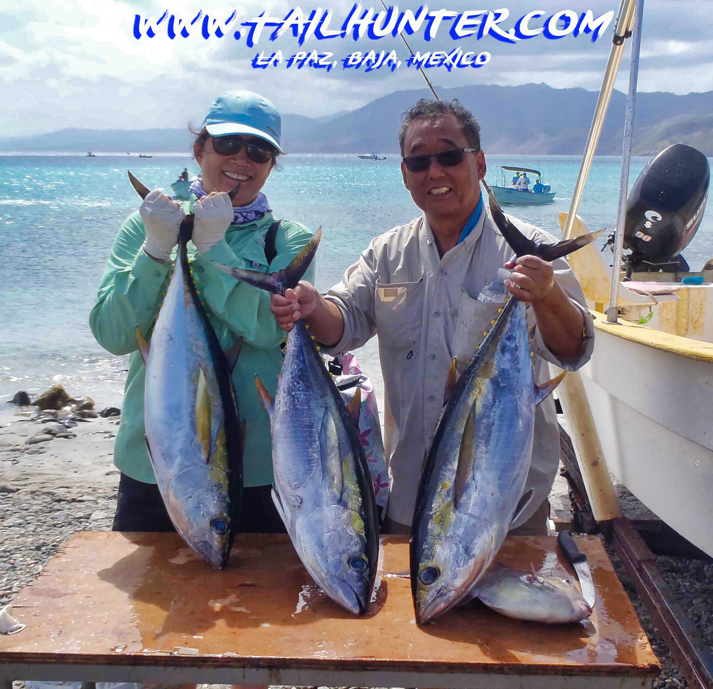 Pretty photo of our first-time anglers to visit us in La Paz, Marlene and Taky Kikuchi with some handfuls of yellowfin.