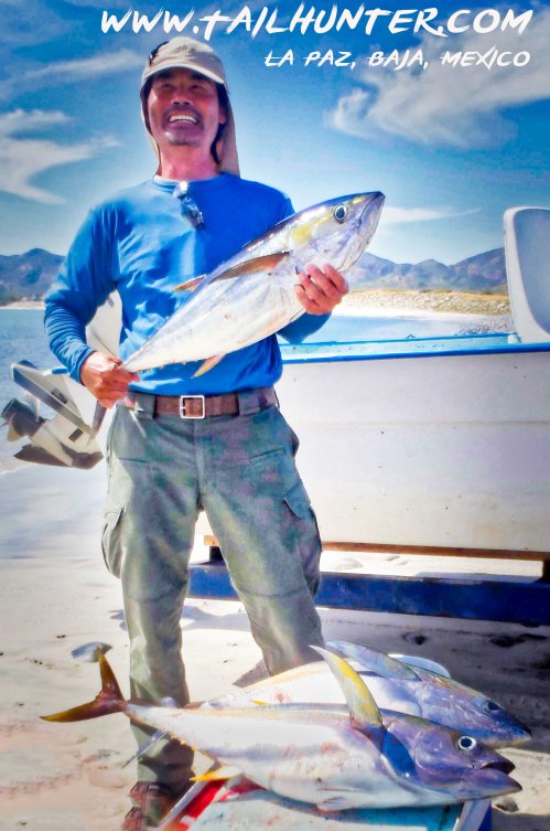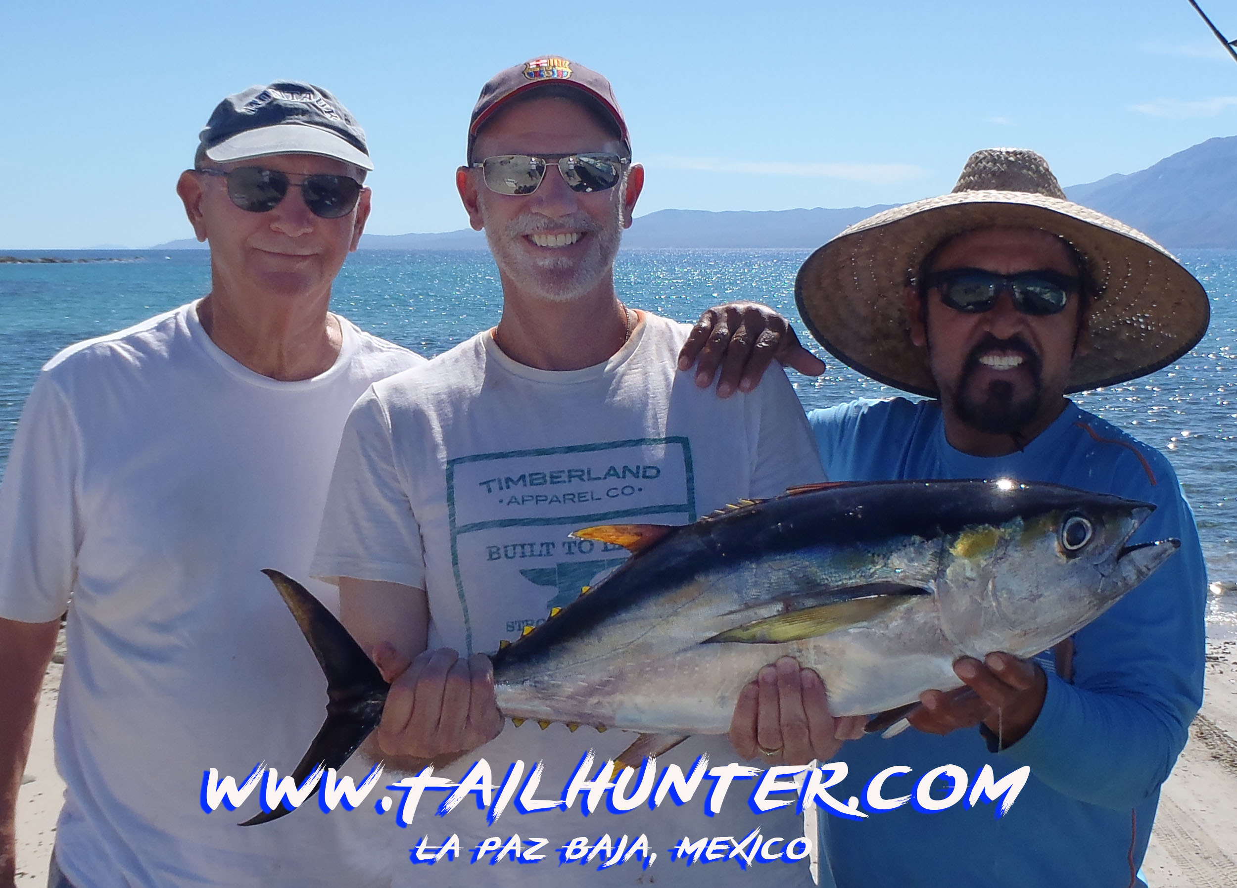 Old Tailhunter amigos for many years, Bill and Patrick with Captain Jorge and a nice yellowfin to go along with a day of bonito fun.