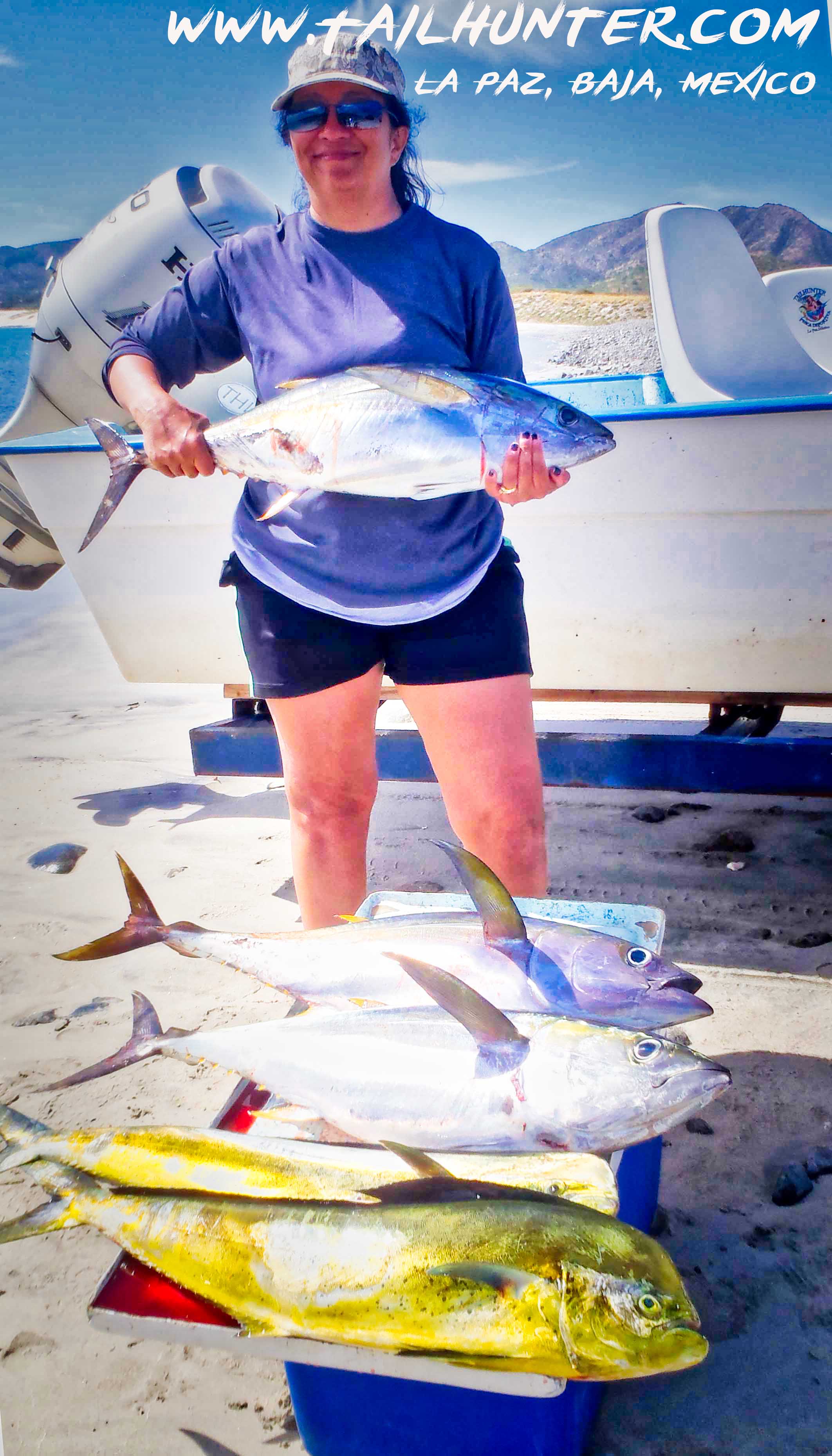 When you can only squeeze in one day to fish in between bouts of wind and you make a great day out’ve it…Elijah Rush from El Cajon, CA got a handful of dorado, a tuna and some pargo (not pictured) for the ice chest!