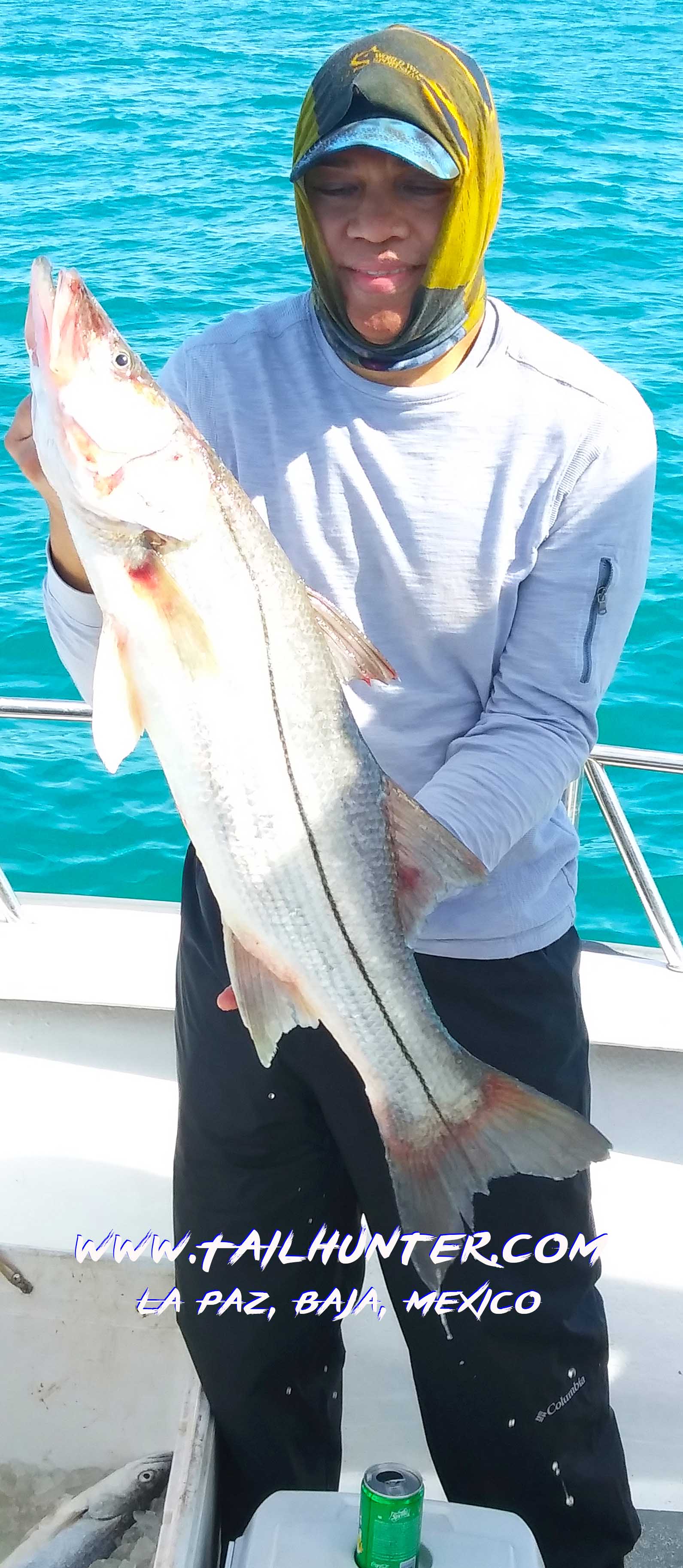 He always rocks! Roger Thompson busted up this big boy slug yellowtail up at the north end of Cerralvo Island slow trolling sardines in shallow water and lost another one that he couldn’t stop jigging iron.