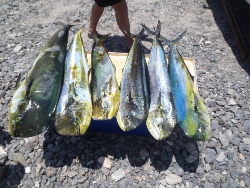 For the first time this week, we sent out some of the boats from our La Paz Fleet. Despite fears about winds and waves, they found bait and got into some decent dorado which we don’t usually see until later in the warmer months.