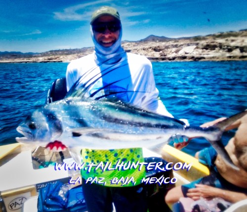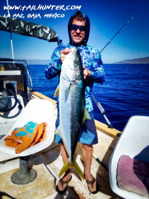 Yellowtail are still hitting on-and-off near Cerralvo Island. Mark Bonsack from Washington was fishing with the Tailhunter Fleet and caught this stocky forktail.