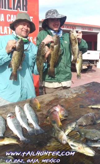 Captain Armando with long-time amigo, Dave Lindell from Pendleton, Oregon with a nice amberjack in hand and quite a variety on the board including snapper, bonito and cabrilla