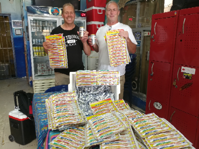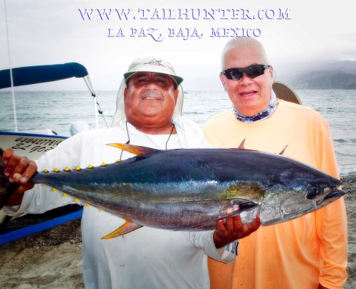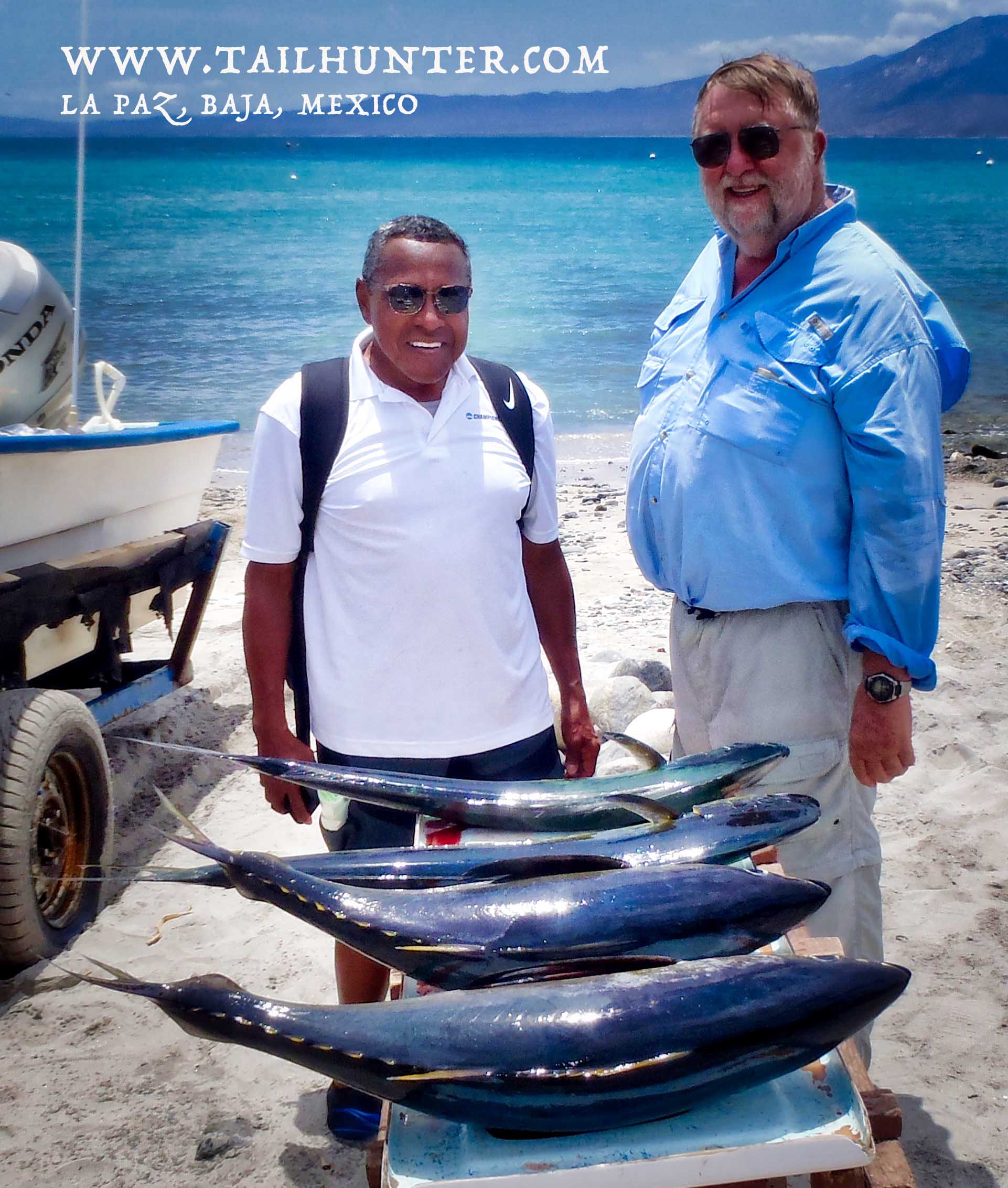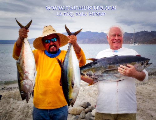 Long-time amigo, John McVay and Captain Jorge finally finding some quality tuna! John fought the larger fish for 45 minutes and said he didn’t get bit until he dropped down to 30-pound test line. Note the pending clouds!