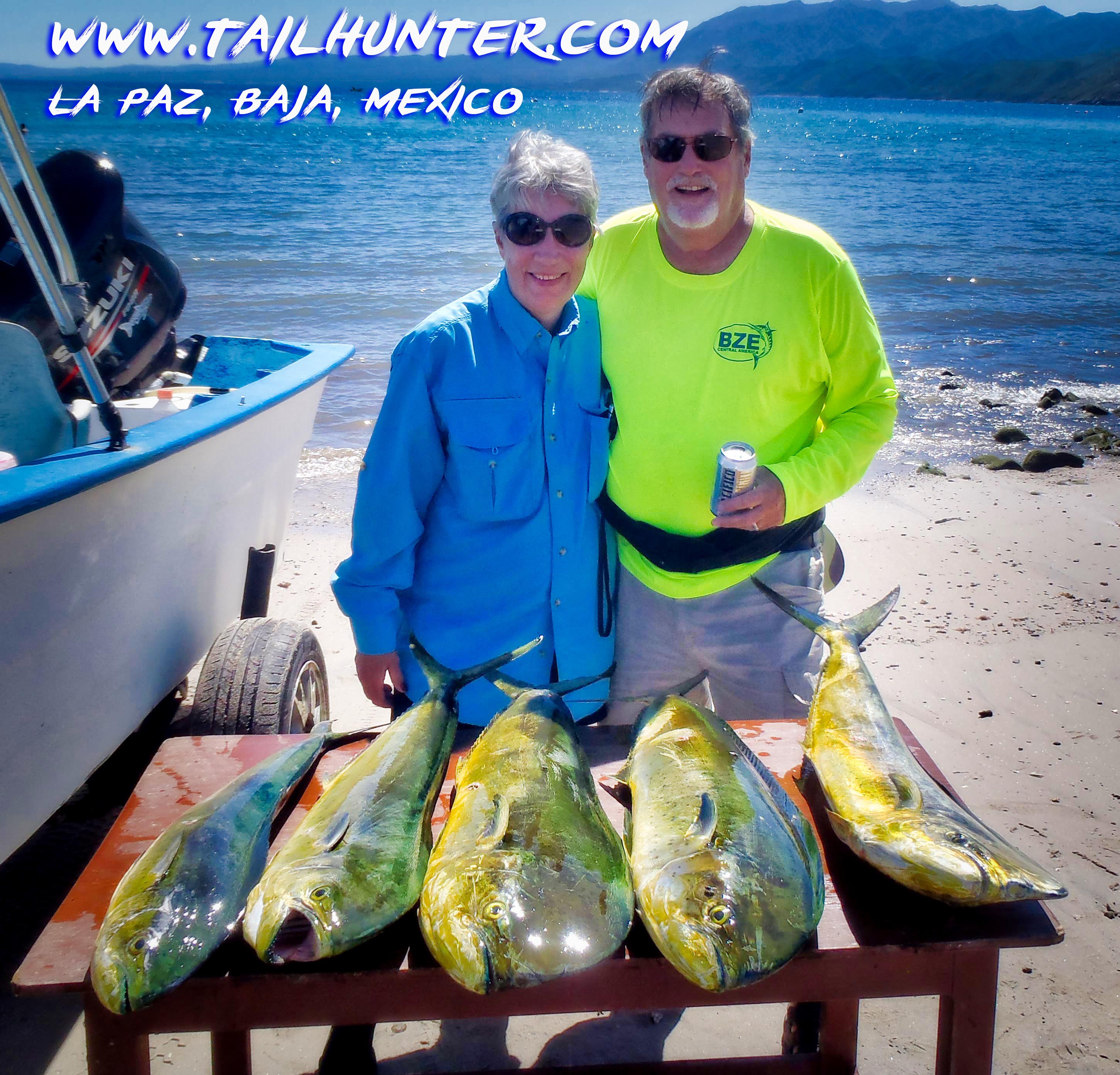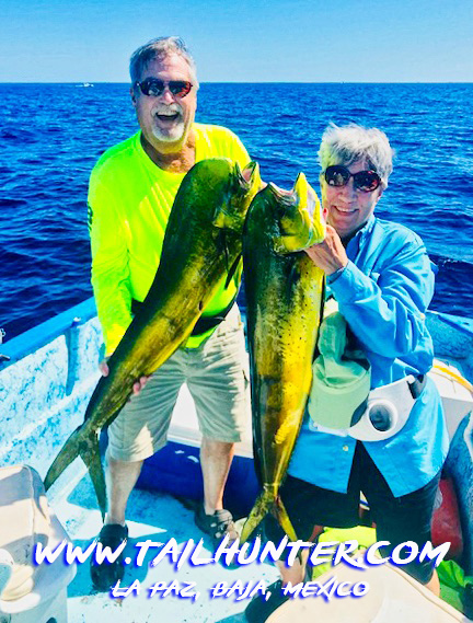 Another set of our fun friends from Idaho, Teri and Mac Christopherson hold up a double-hooke-up of dorado.