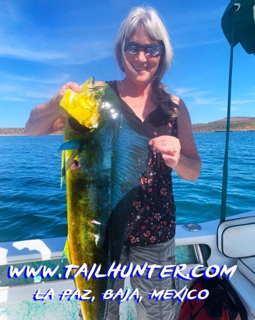 Escaping -30 degree weather up in Alberta, Canada, Sheri Maitland found sunshine and a school of dorado like this one just inside La Paz Bay on one of the calmer days.