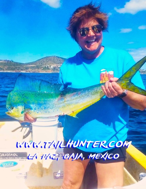 Our amiga, Donna Thompson, who aced some nice yellowtail using live mackerel on the east side of Cerralvo Island.