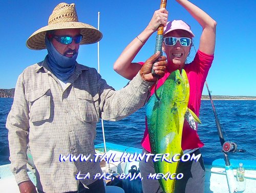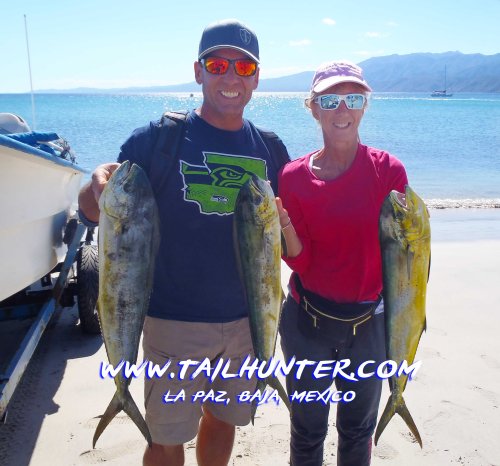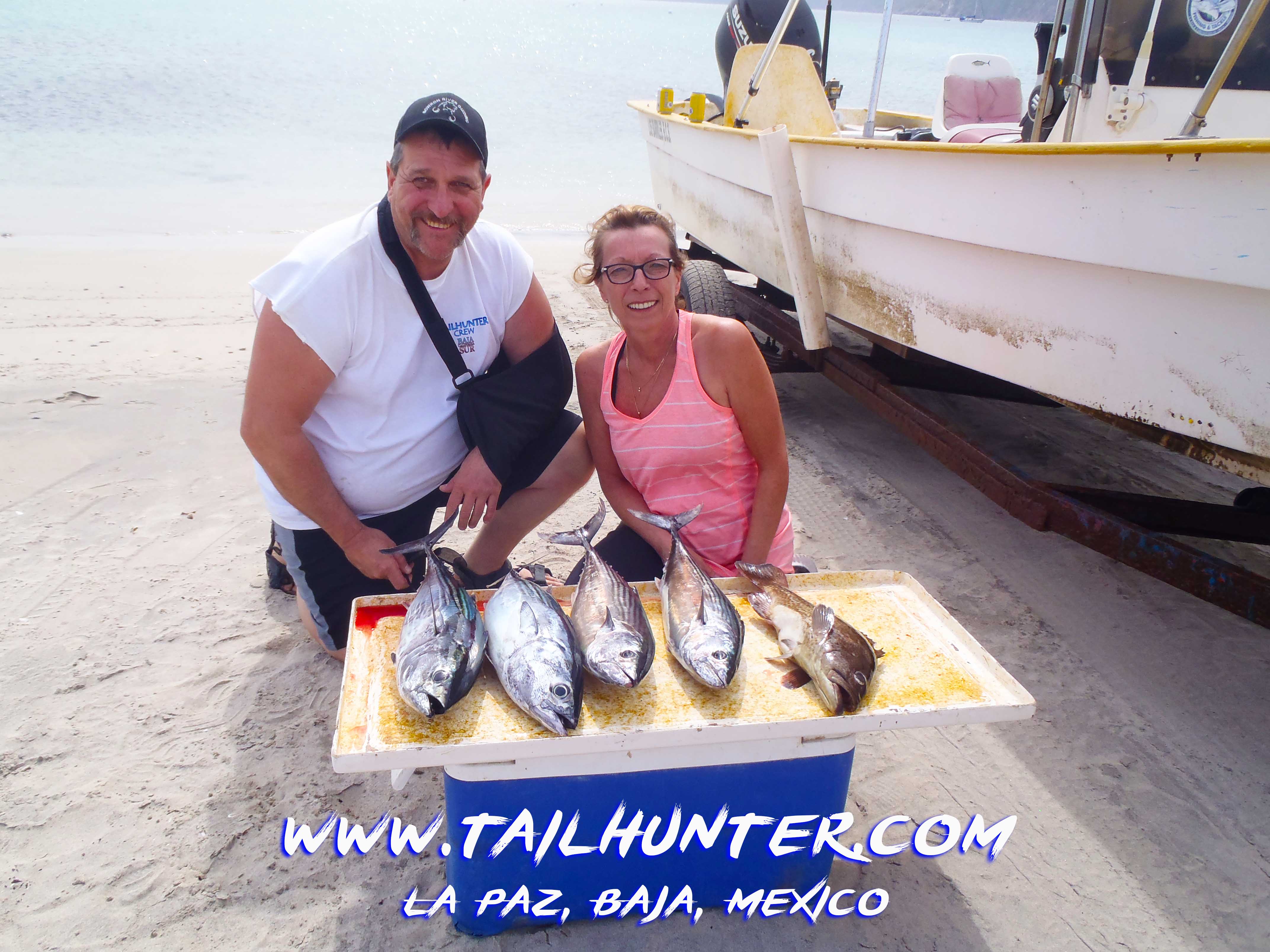 Scott and Lynn Pichette are usually in negative freezing weather this time of the year in Canada where they run a hunting guide service. But, they were able to catch some warm sunshine and even some fish while fishing both La Paz (dorado) and Las Arenas/ Muertos where they hooked some white/blue bonito and a cabrilla.
