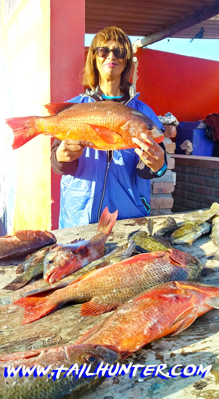 Captain Rigo poses with Verda and another pargo for the cooler!