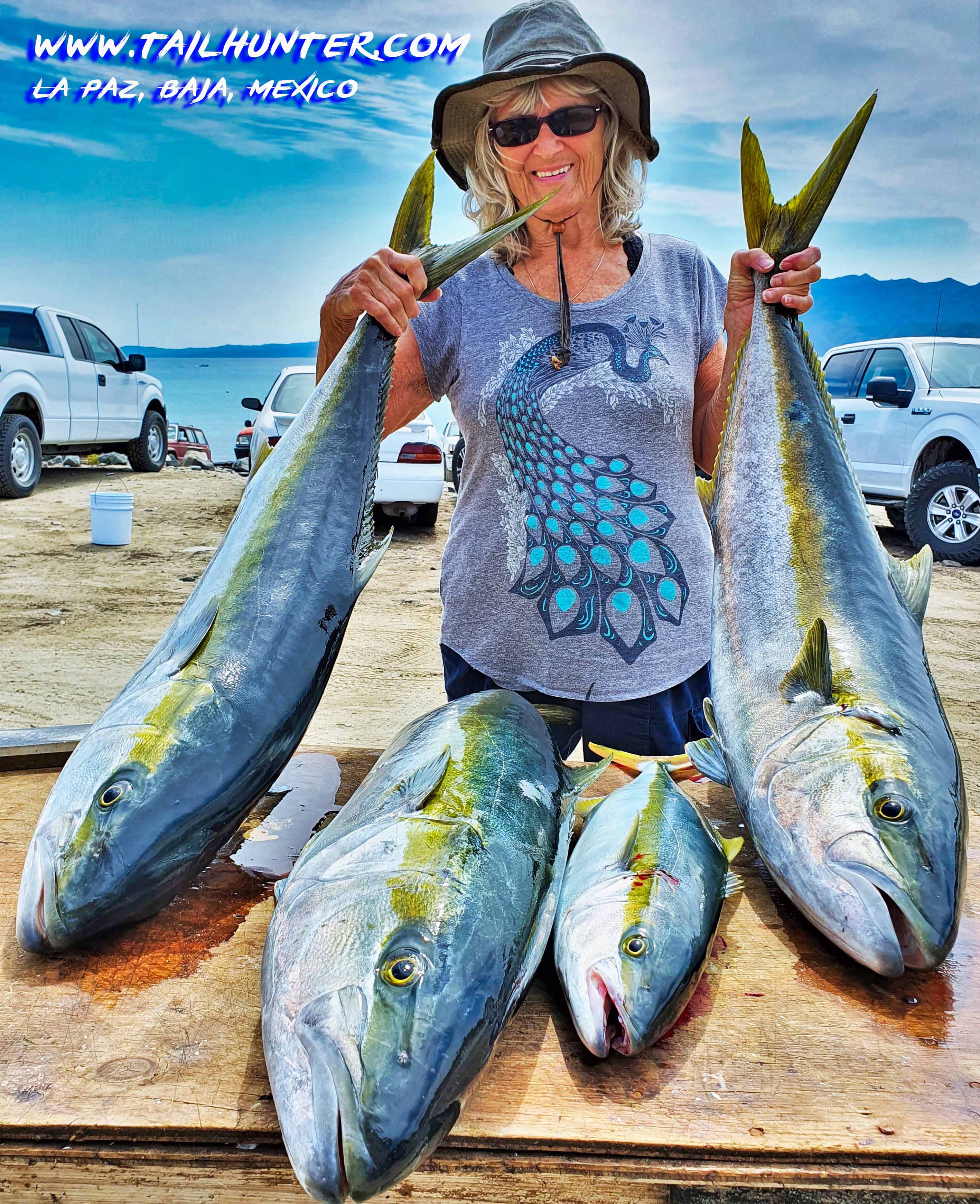 Our amiga, Donna Thompson, who aced some nice yellowtail using live mackerel on the east side of Cerralvo Island.