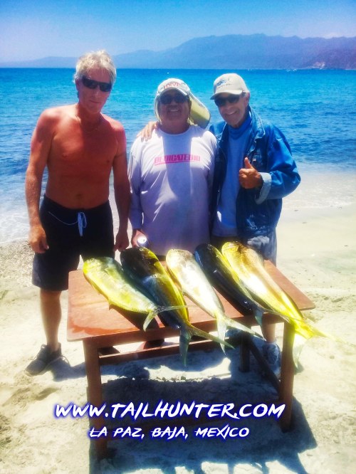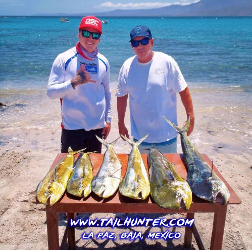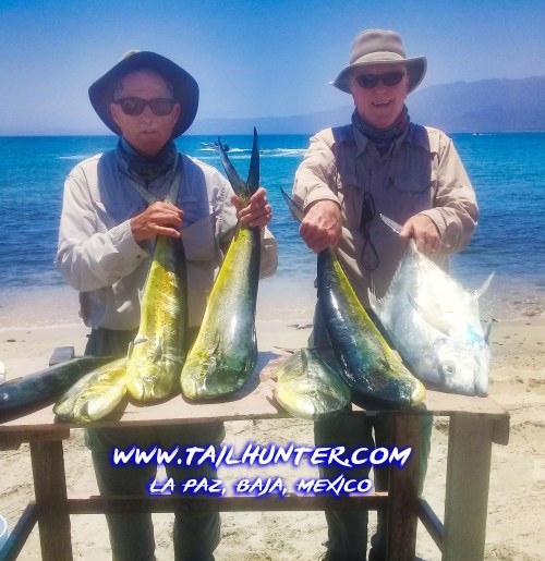 A good start to the fishing trip! Austin and Dan Dorati show a table-full of dorado headed to the freezer!