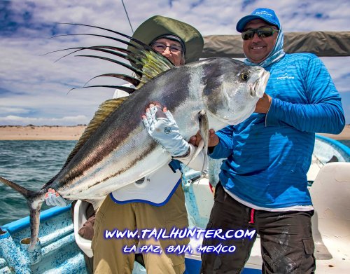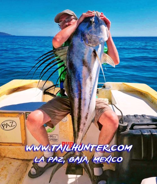 Almost looks like a poster! Hard to find a better photo than Mark Bonsack and his 66-pound roosterfish. He had it on a scale before releasing it. He got 3 this day.