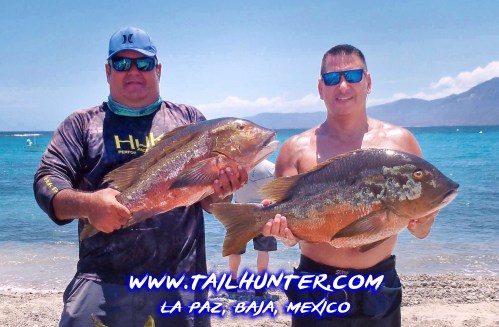 Some fine fish meat for the table! Captain Gerardo and Tony Toven show off a pair of great barred pargo.