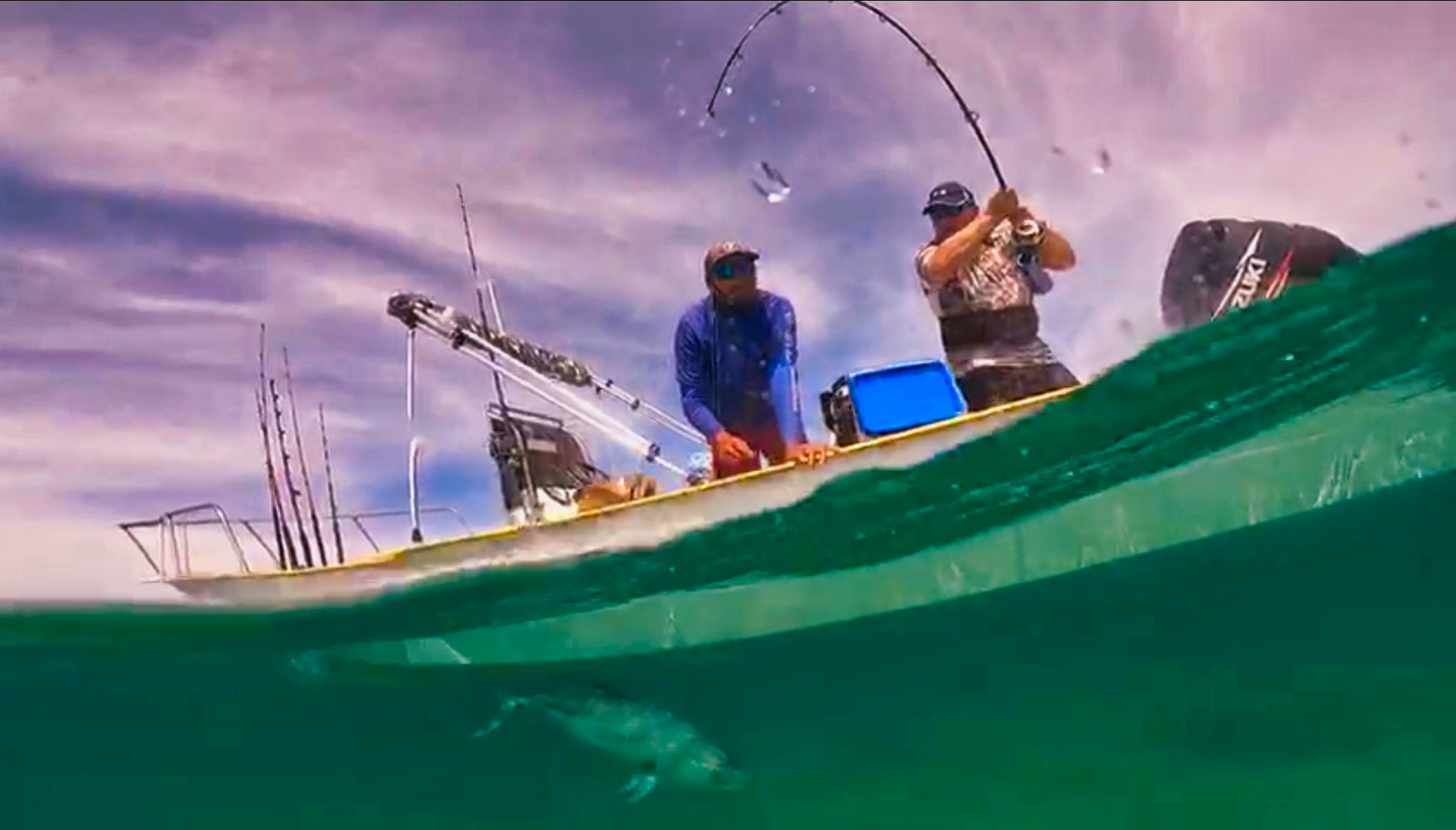 Pretty cool underwater shots of Pancho and Brad and a seriously bent rod and a roosterfish at color.