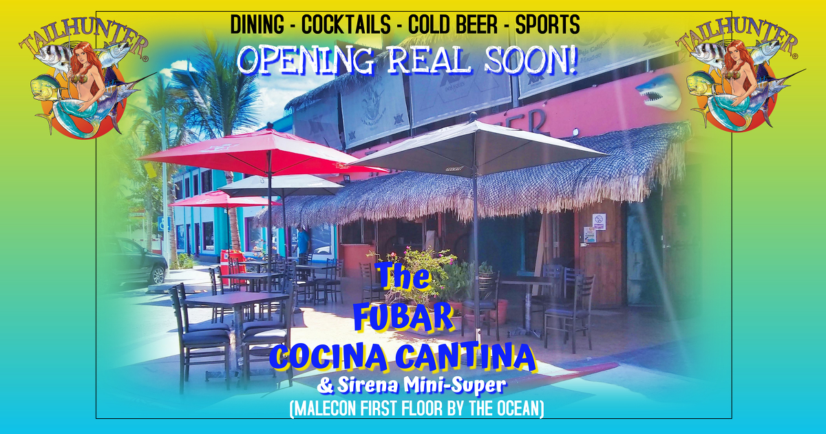 However, after almost 2 months of re-model and crazy work with our team, we’ll finally be opening up our FUBAR COCINA CANTINA. It’s not the Tailhunter Restaurant but the closest thing to it…it’s our first floor right on the Malecon waterfront. We’ll have a new expanded street-side dining menu plus full bar featuring our new Bloody Mary Bar.