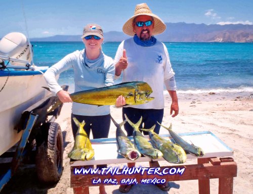 Thumbs-up from Captain Jorge with Sommer Adams from San Diego on her first trip to visit us. Nice rack of dorado to start the week for her!