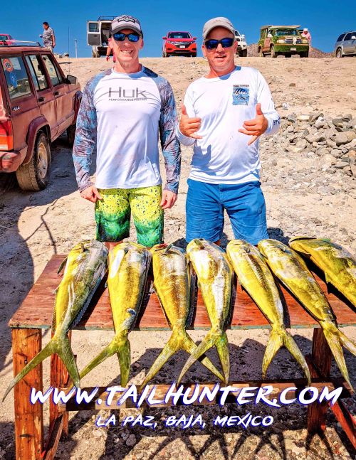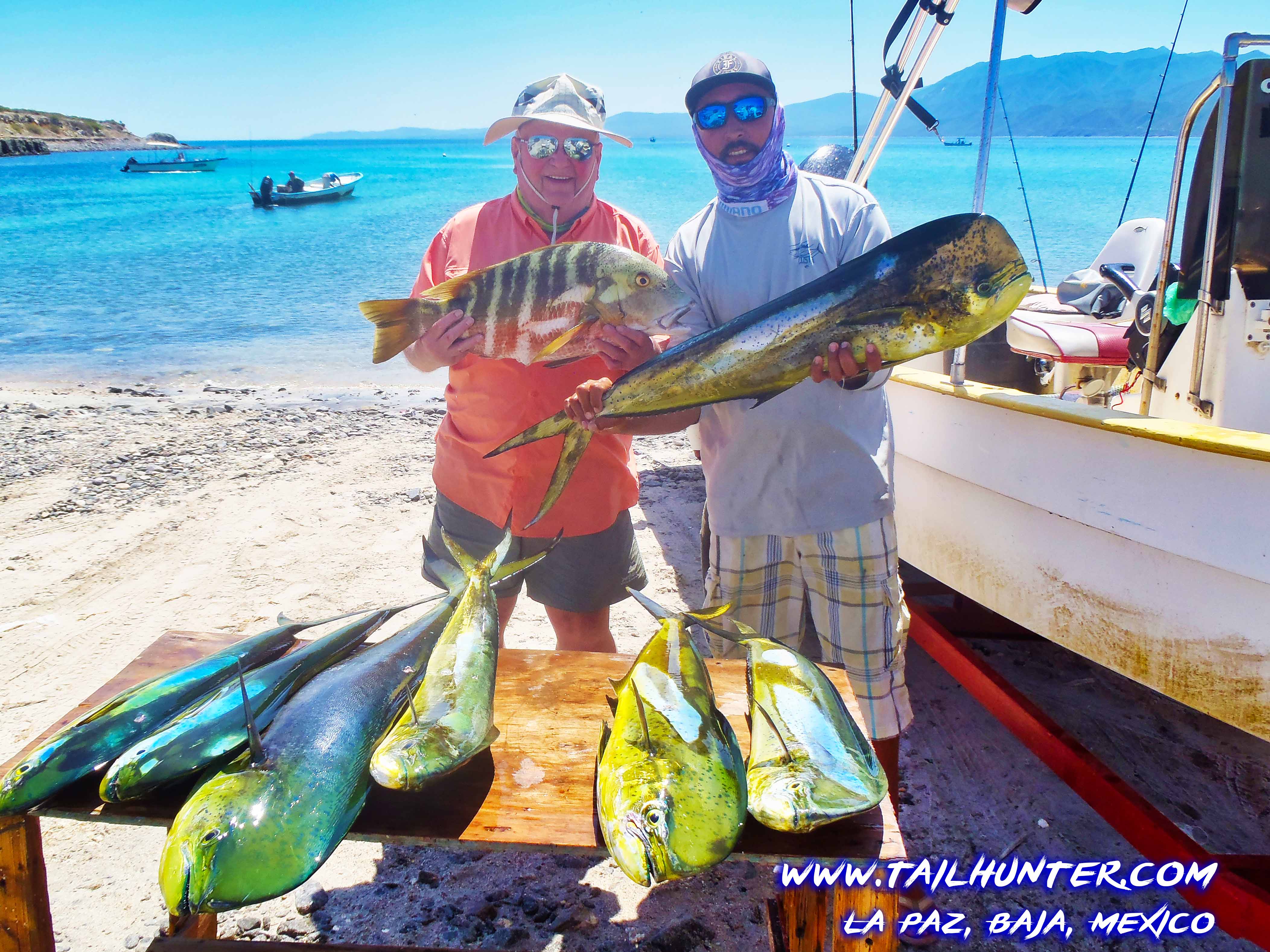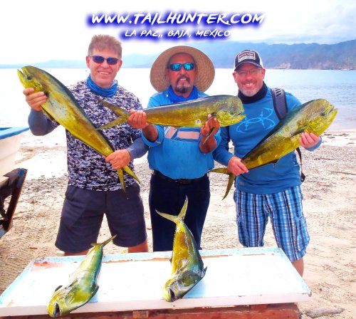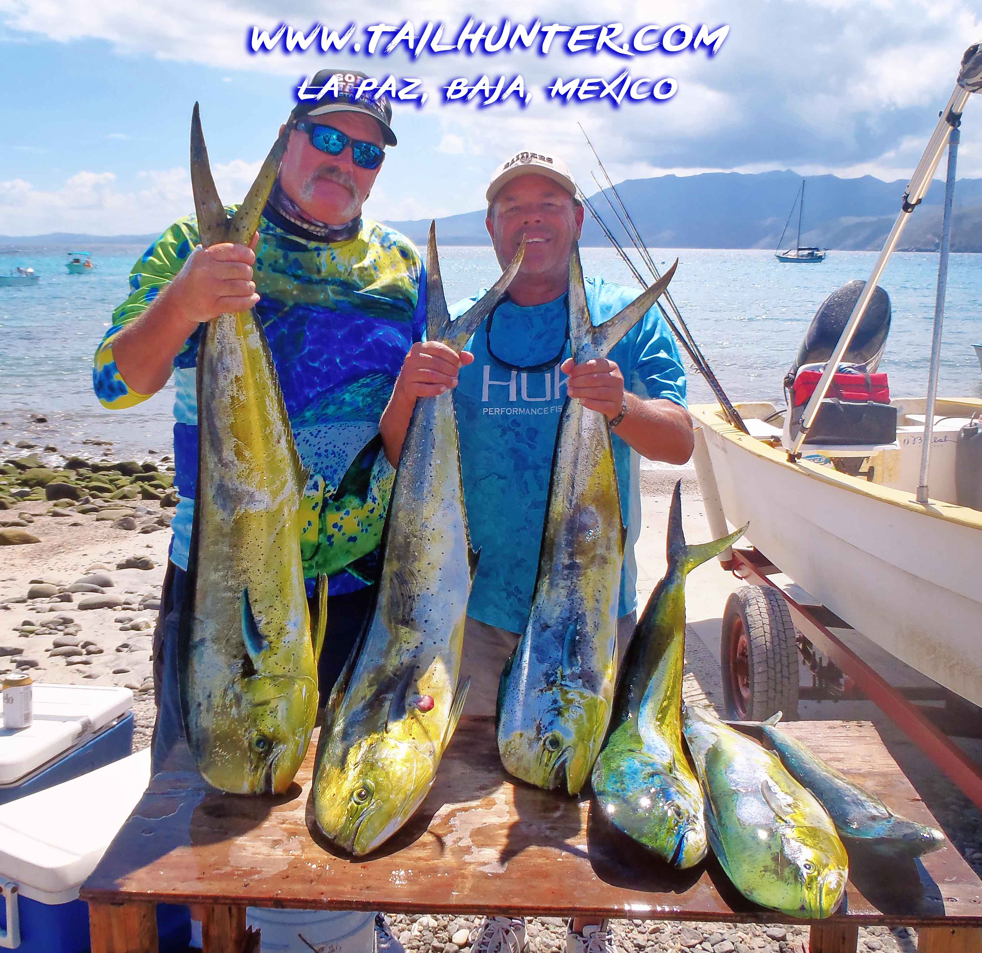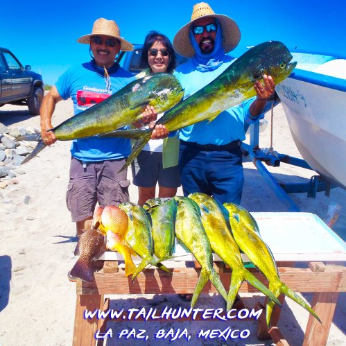 For our Tailhunter La Paz Fleet, limits were not only unusual, but often folks caught and then had to release so many dorado, they sometimes were back to the beach before lunch. Most of the fish were school-sized 5 to 15 pounders, but lots of fun, especially on light tackle or for first-timers. About half the fish hooked were released either because boxes were already full or folks were only keeping the larger fish.