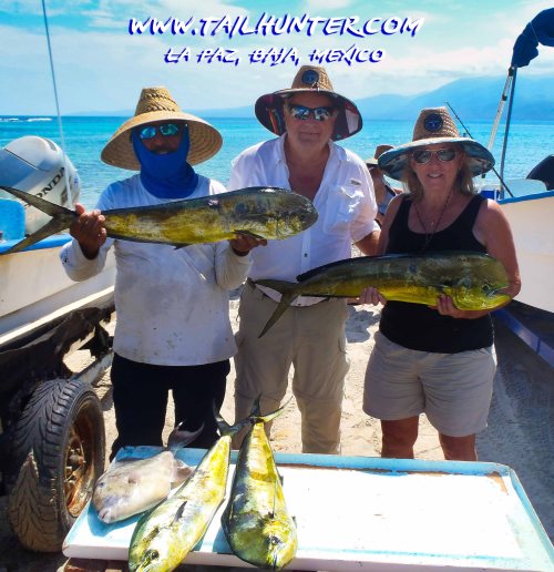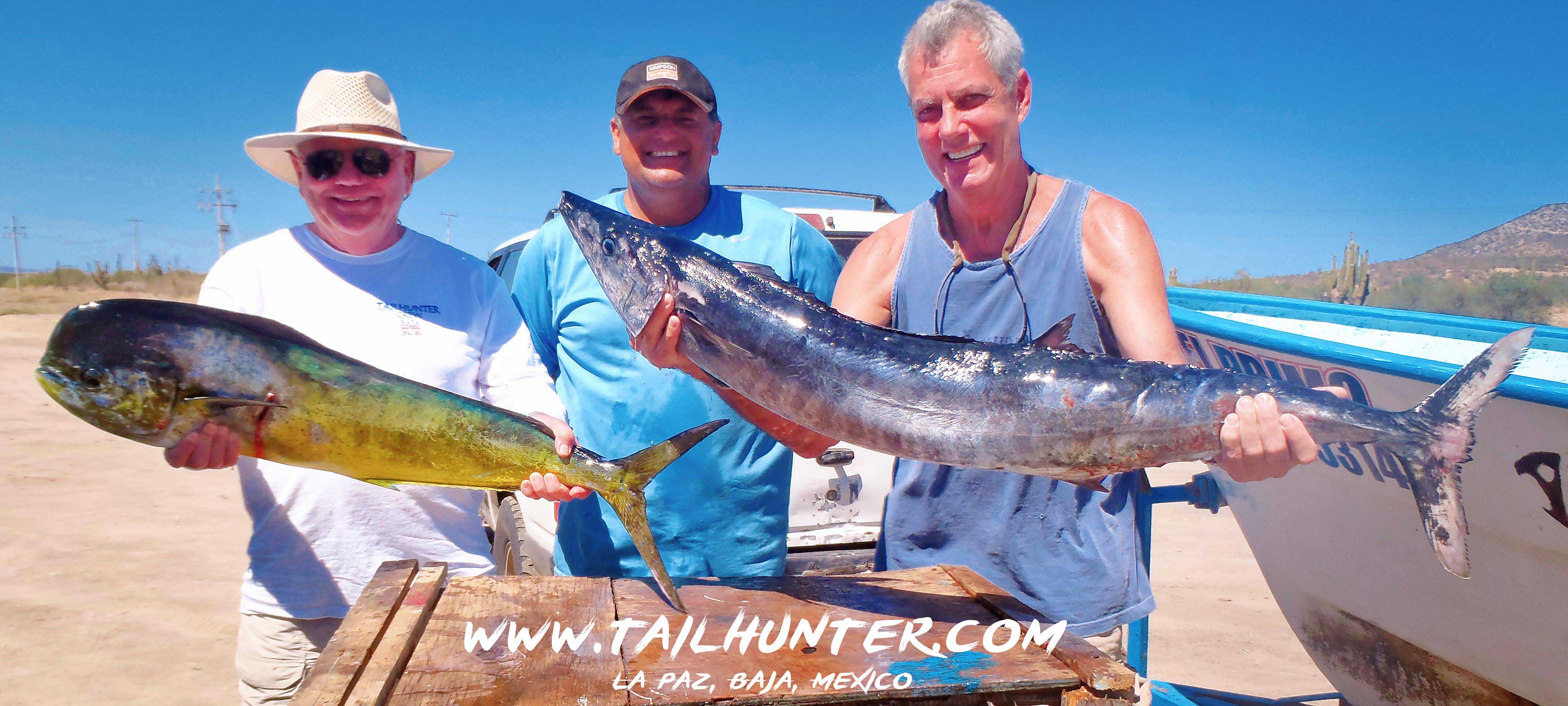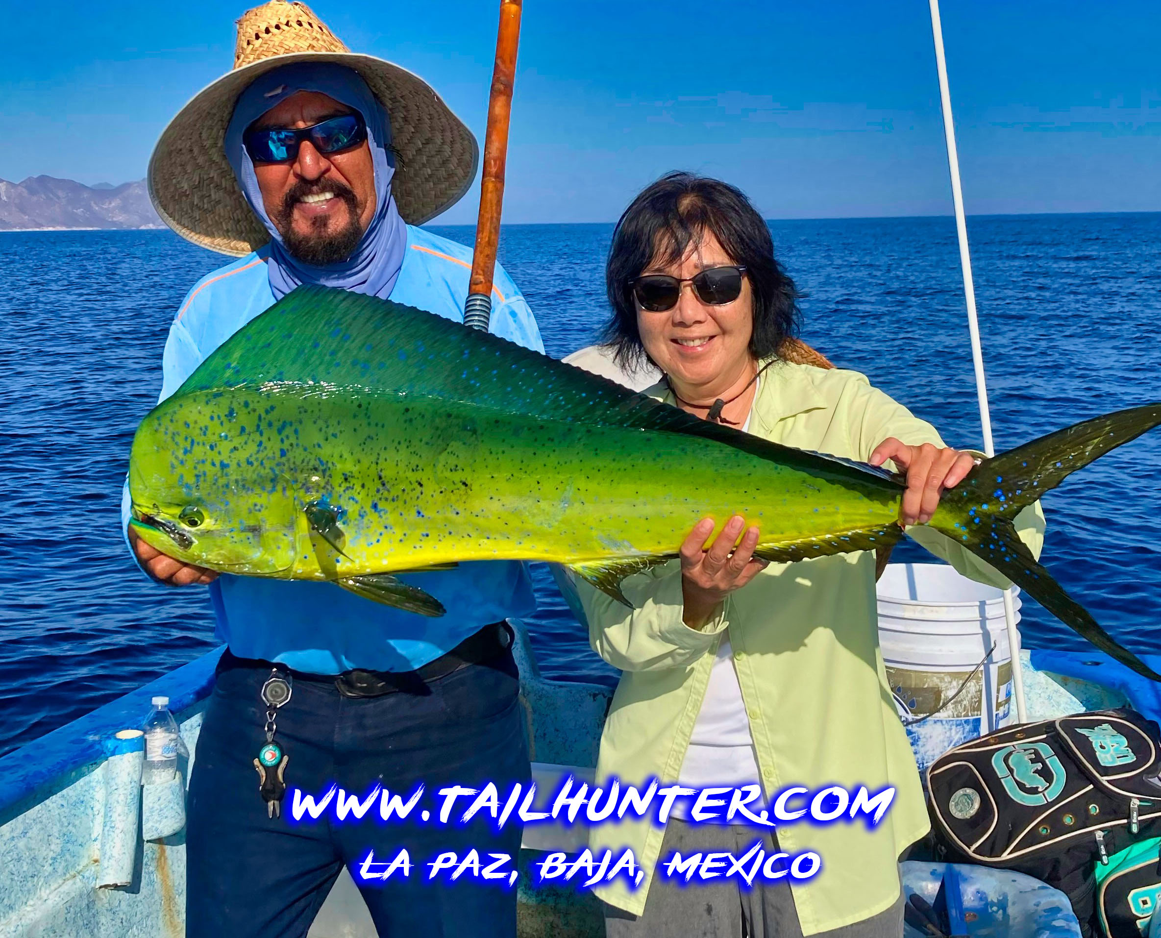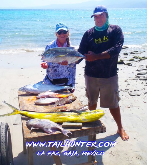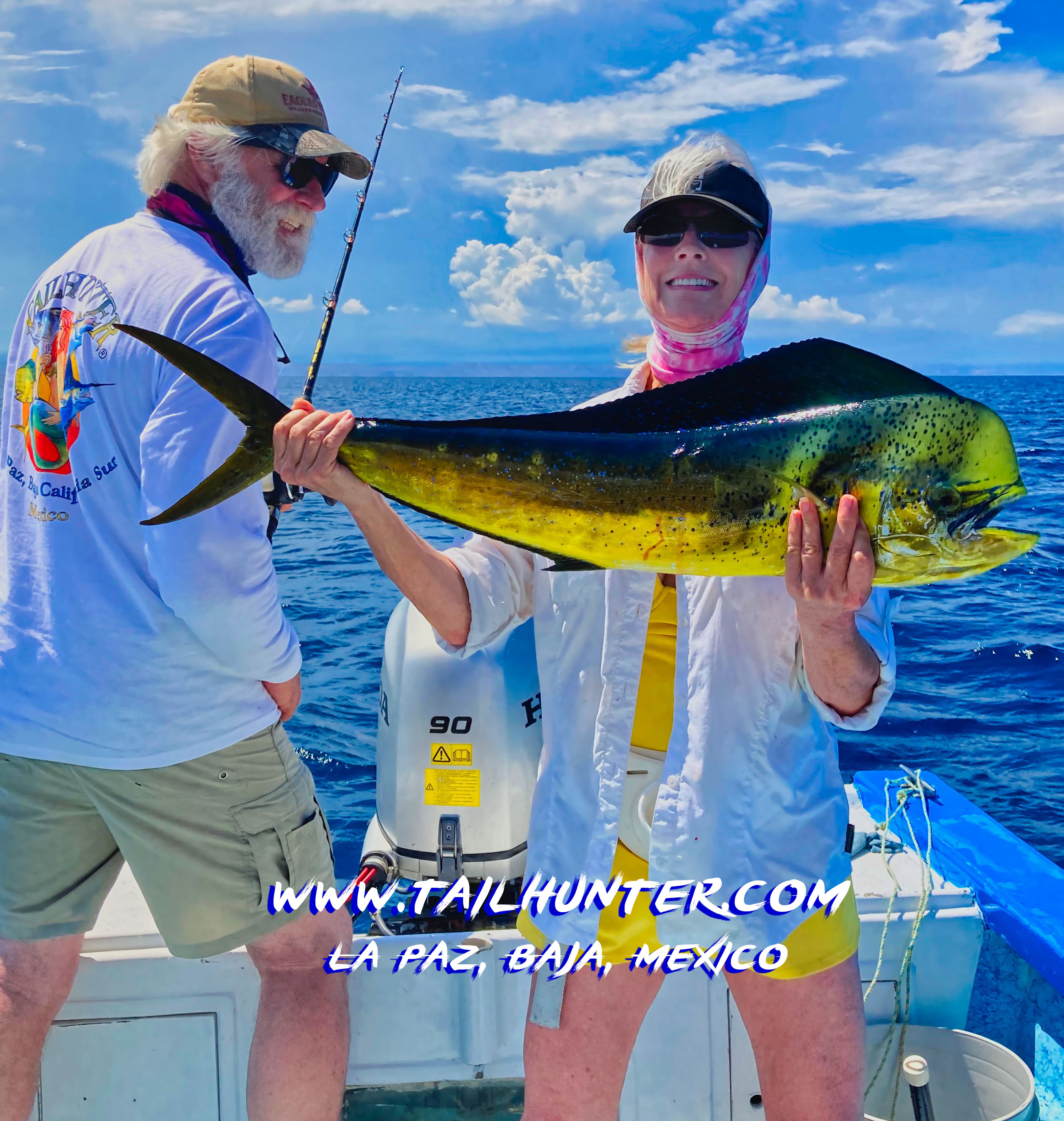 For our Tailhunter La Paz Fleet, limits were not only unusual, but often folks caught and then had to release so many dorado, they sometimes were back to the beach before lunch. Most of the fish were school-sized 5 to 15 pounders, but lots of fun, especially on light tackle or for first-timers. About half the fish hooked were released either because boxes were already full or folks were only keeping the larger fish.