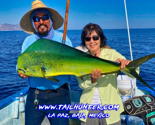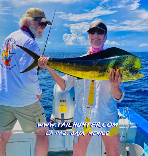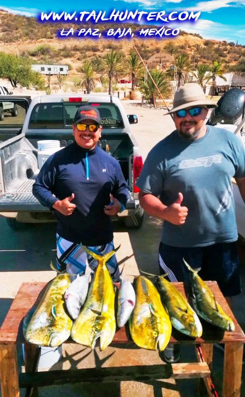 For our Tailhunter Las Arenas Fleet, there weren’t as many dorado, but the dorado were some of the largest of the season. No big monsters, but fish were 10-25 pounders…a size we hadn’t seen in many months. Areas included the buoys, Punta Perrico and south towards Los Alamos. But, the schools could honesty show up anywhere. There were a few days when it was bumpy and windy and our anglers had to fish inshore for pargo, snapper and cabrilla, but overall, most folks fish several days with us and they made of for the slow days on their other days when they stacked up the larger dorado.