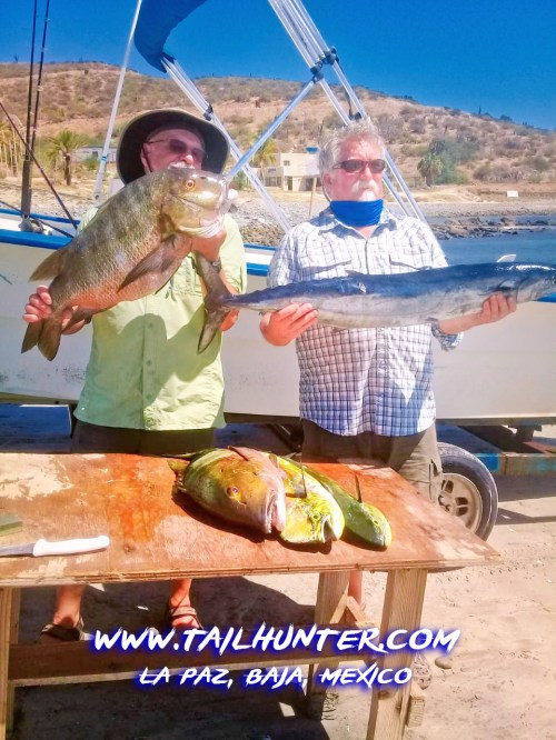 They didn’t catch ALOT of any one species, but Captain Gerardo got Arla and John Washington on a bunch of different species. On the table, I see dorado, jack crevale, triggerfish, snapper, cabrilla and bonito.