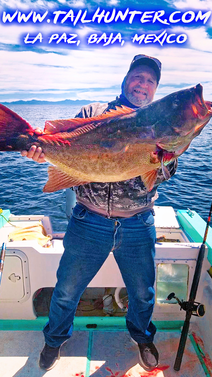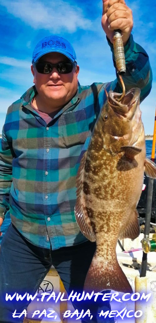 Our own popular Captain “Fettucini” Alfredo Gaxiola got out with his wife to fish around Cerralvo Island on one of the calmer days and he nailed this horse of a trophy cabrilla.