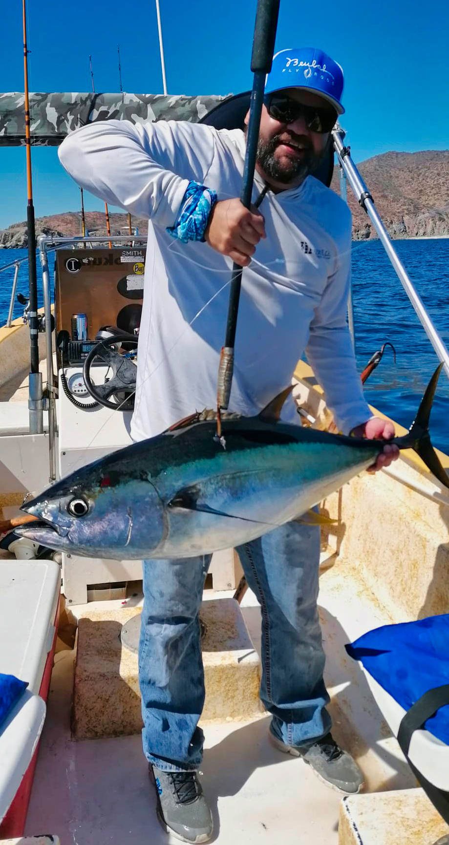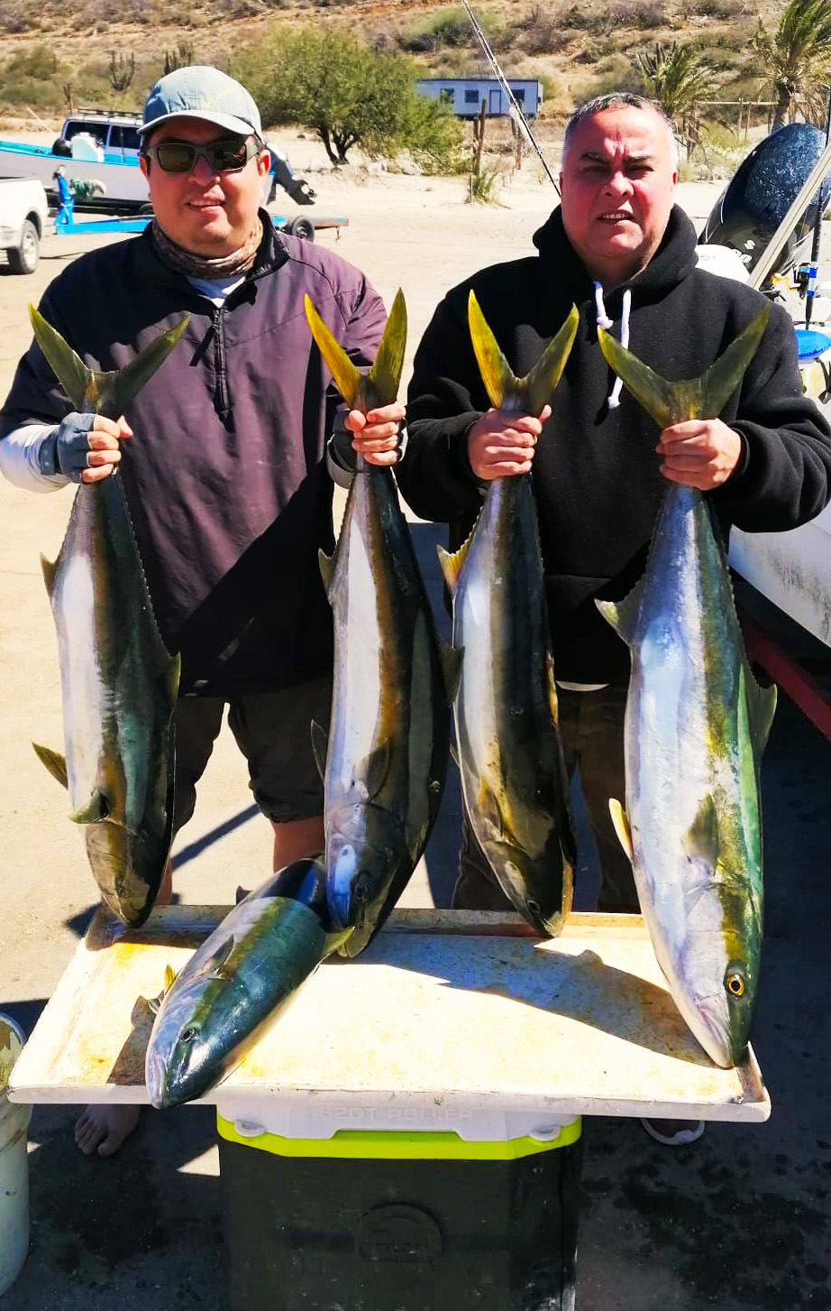 Fishing with Captain Pancho, Dr. Santiago is a physician in La Paz and he and Pancho stuffed the fish box with some legit yellowtail on the backside of Cerralvo Island.