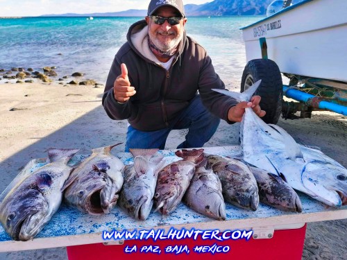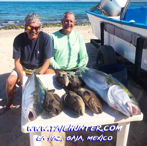 Our own Tailhunter amigos and popular favorite van drivers, Jorge and Esteban Romero took the spinning rods out to Bahia Muertos with the plastic jigs and took home a cooler full of tasty snapper and cabrilla. All fishing from the beach and rocks.