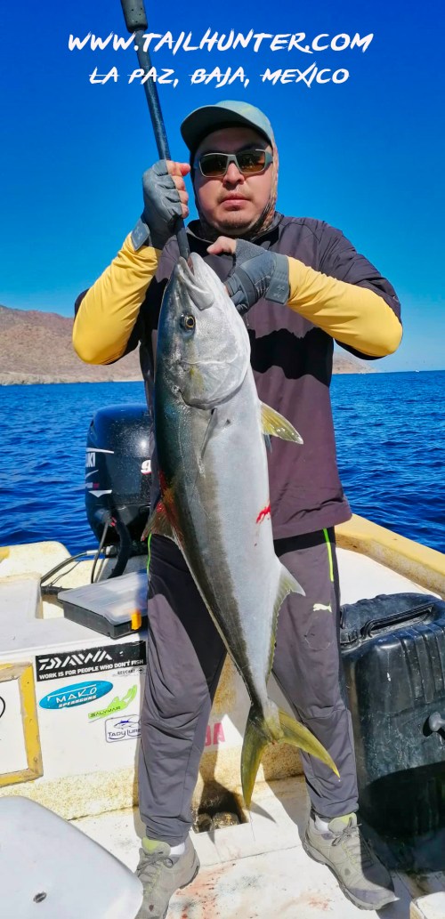 With temps in the high 70’s to low 80’s, sunny skies and mostly moderate seas, anglers were able to get in on that hot yellowtail bite that’s been going on for the better part of two weeks. There aren’t many tourist anglers as this is off-season, but captains, their families and locals from La Paz and as far as Los Barriles (the East Cape) far to the south were jumping on boats to get on top of these fish. Last weekend on Saturday, as many as 80 pangas and other assorted vessels were sitting on the honey-holes taking limits. On Sunday fewer fish with about half the boats counted. But, that’s to be expected when there’s that much traffic on the water. However…
