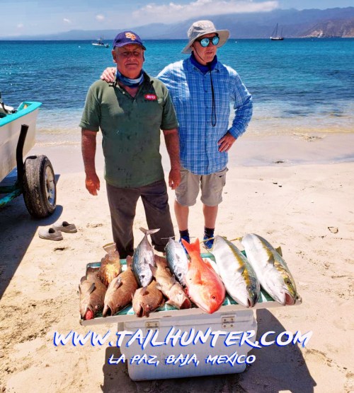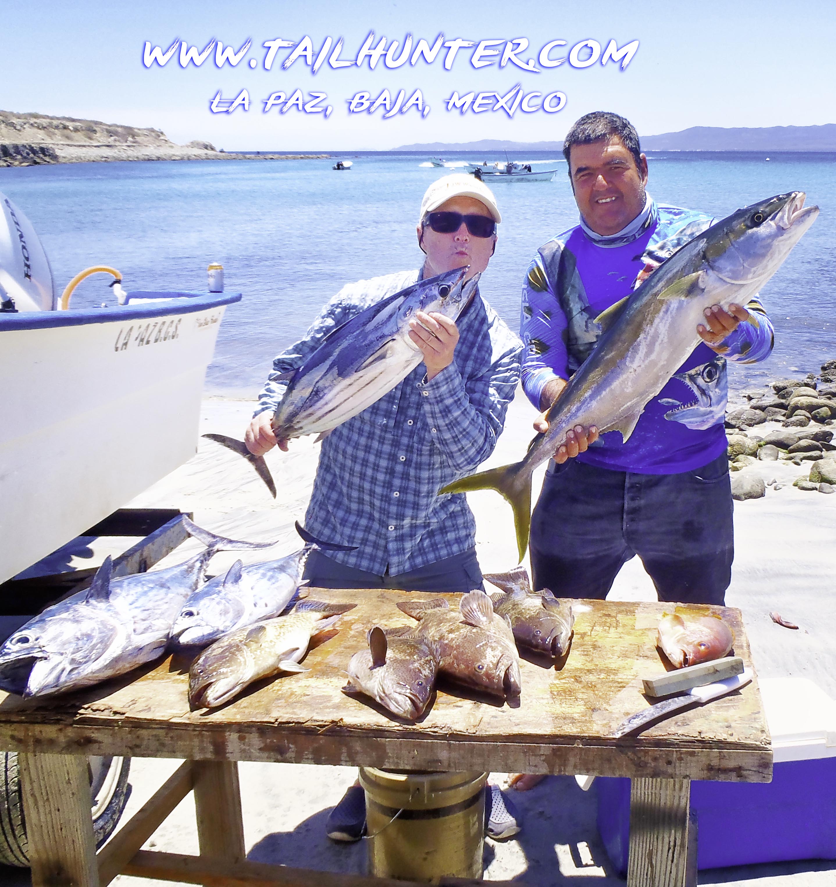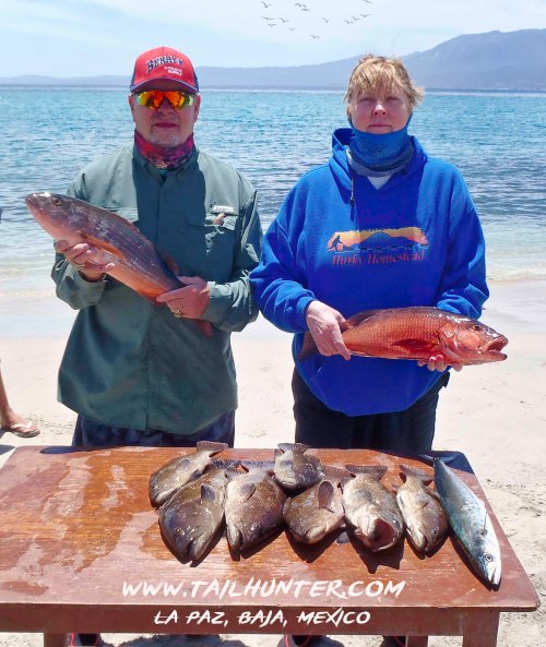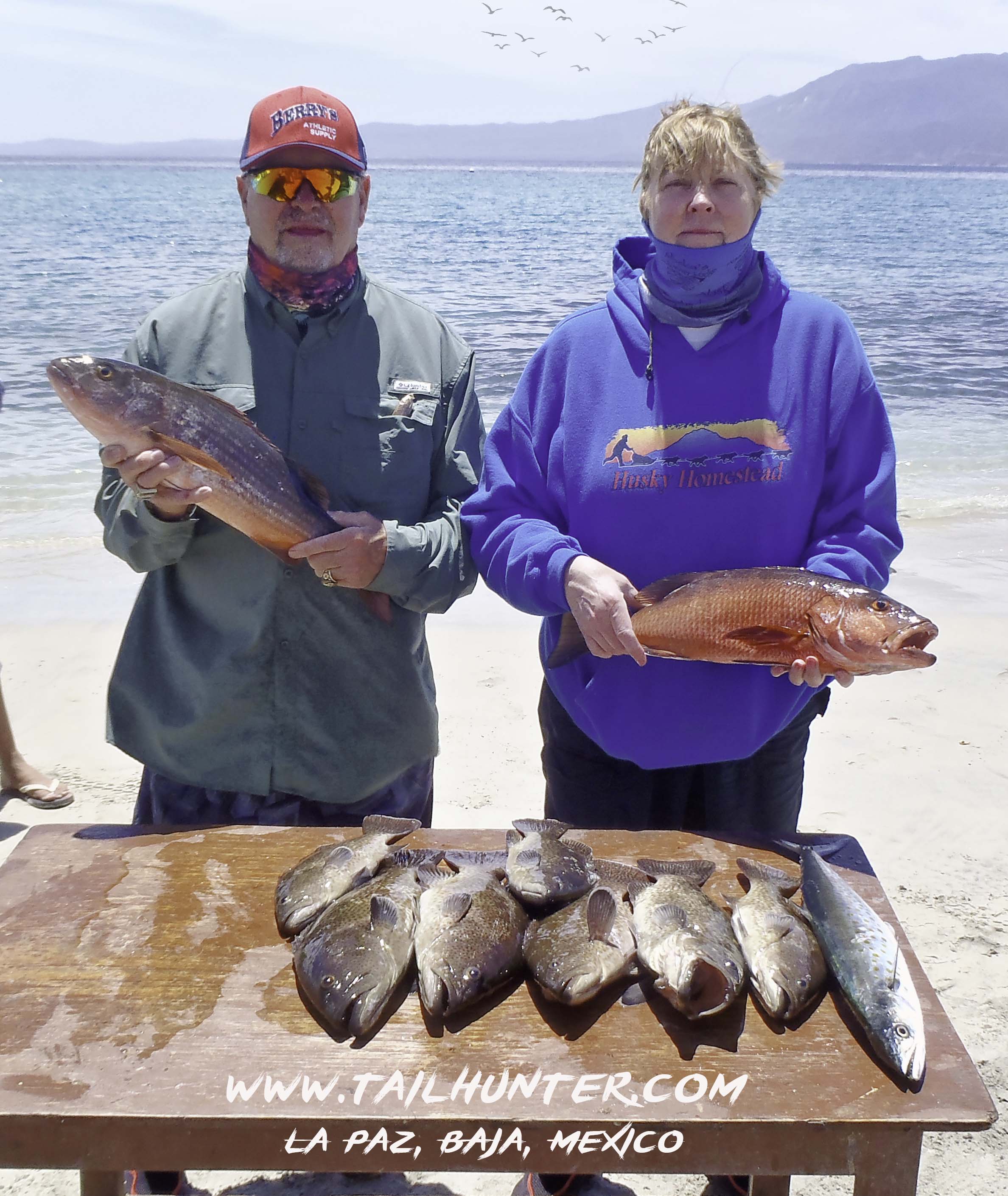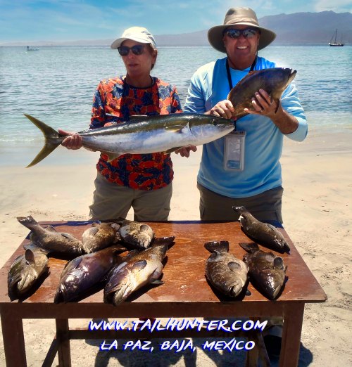 A great first day for Sue and Bobby Stanley from the San Diego area on their first trip to La Paz with a nice yellowtail and some great action on some big boy cabrilla.