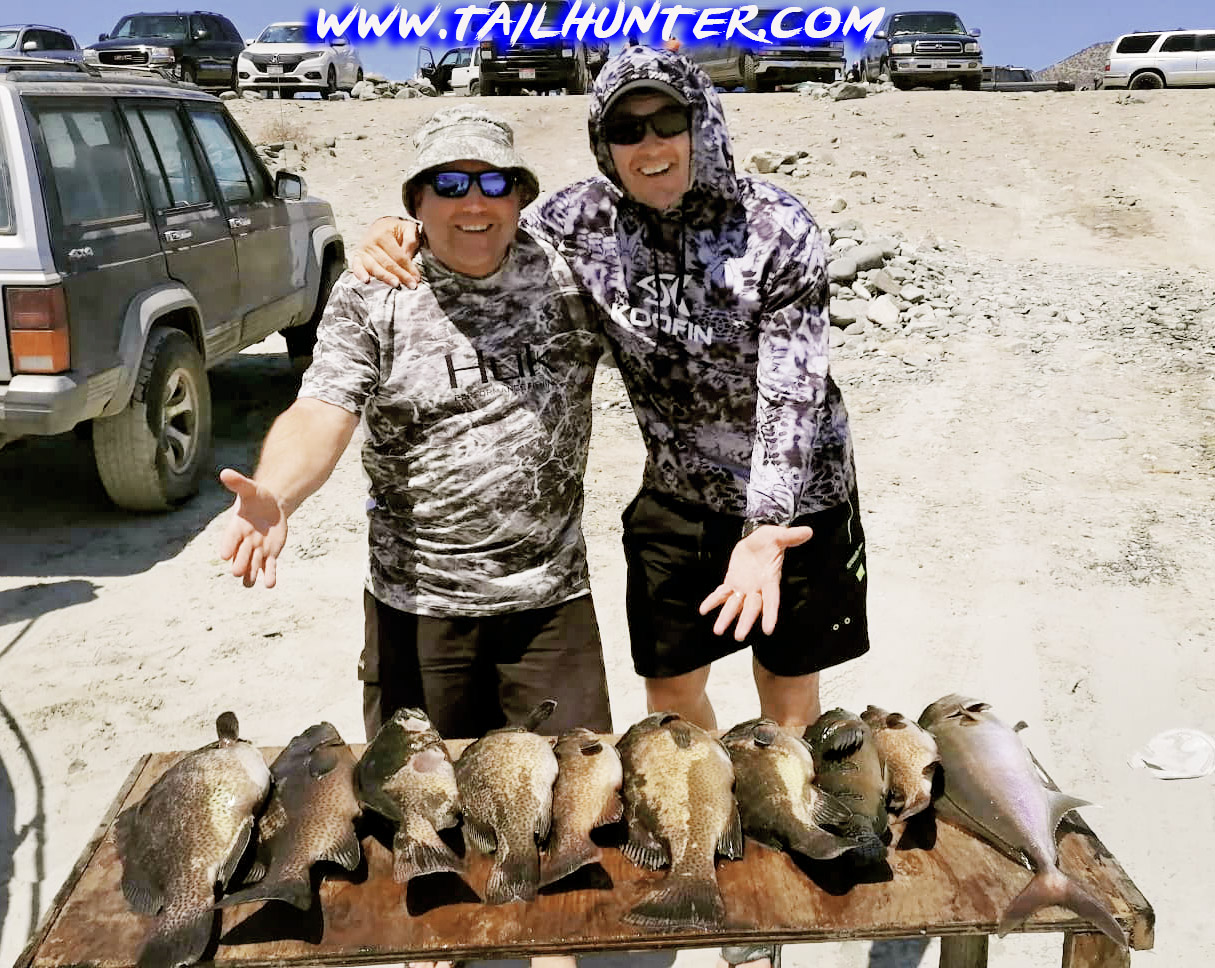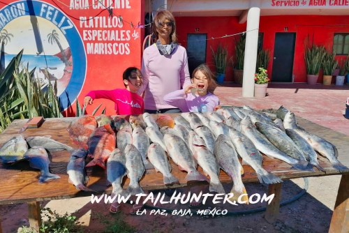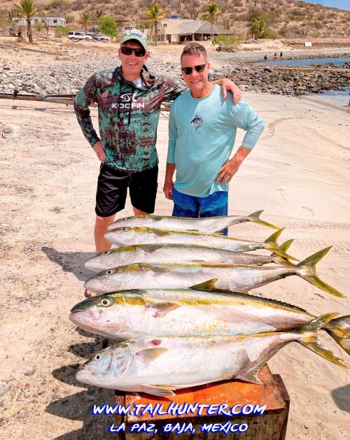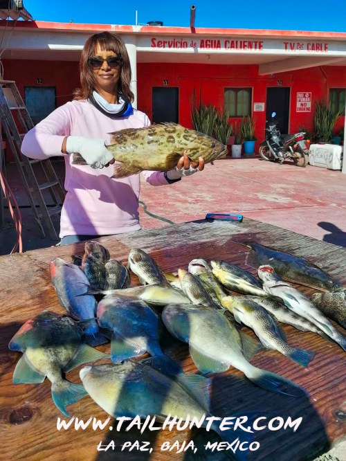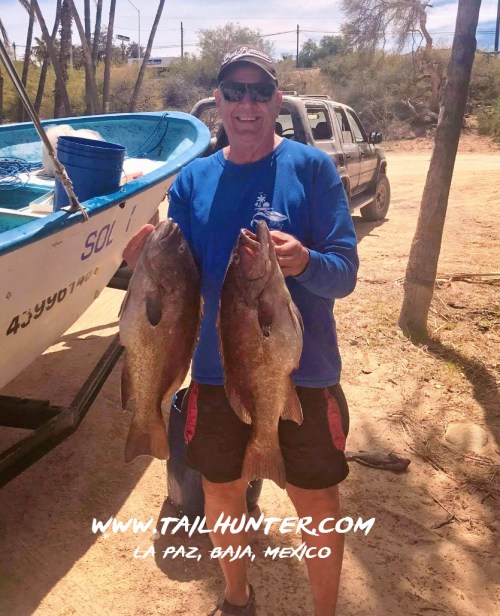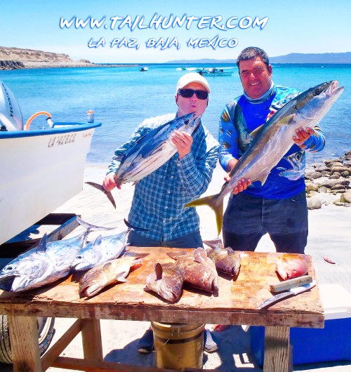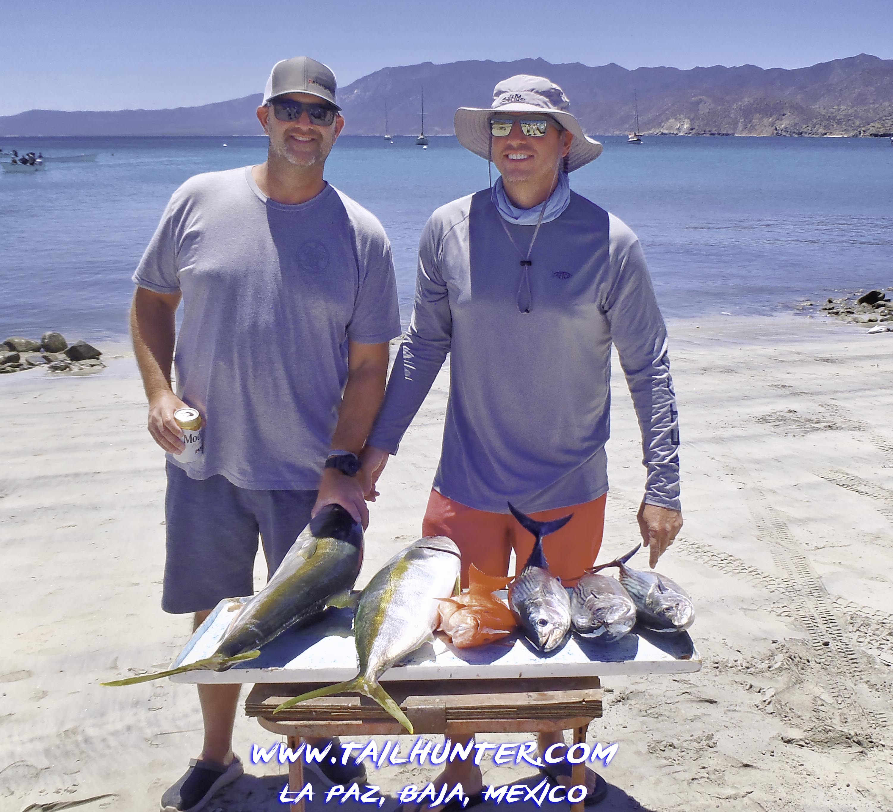 A great first day for Sue and Bobby Stanley from the San Diego area on their first trip to La Paz with a nice yellowtail and some great action on some big boy cabrilla.