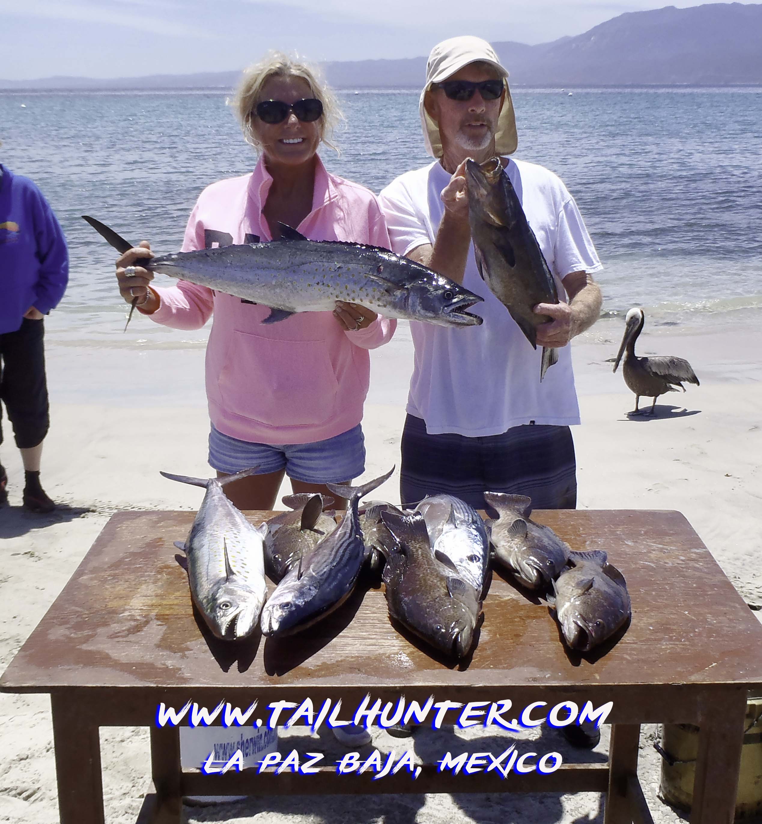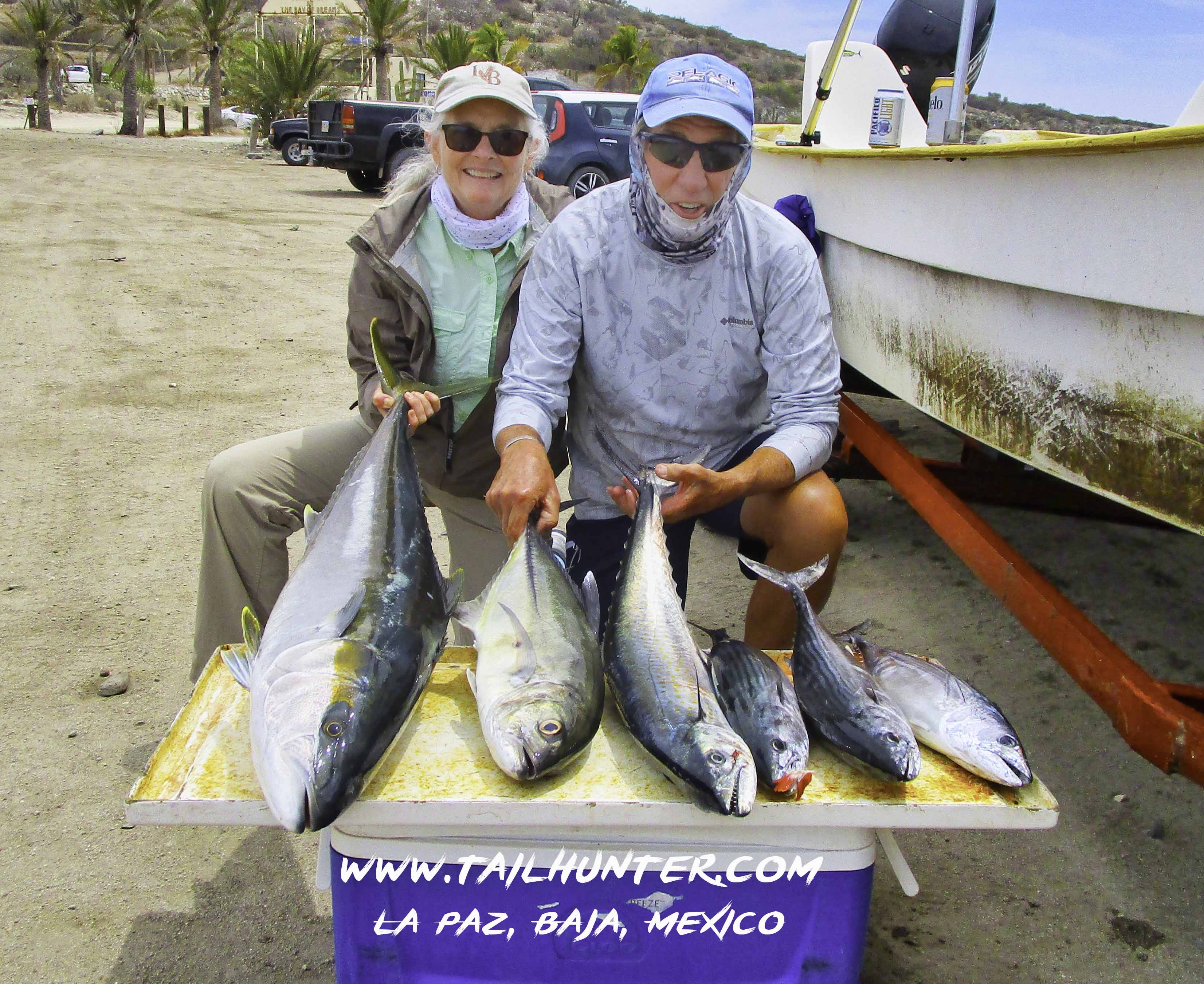 Jim and Brenda Bovee, our San Diego amigos with yellowtail, jack crevalle, a big sierra and several tasty white bonito.