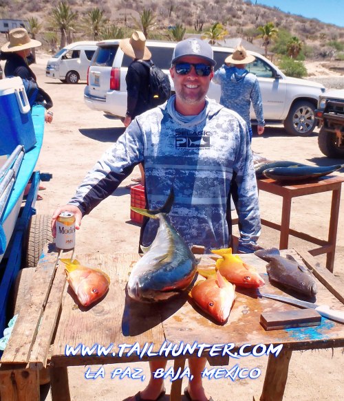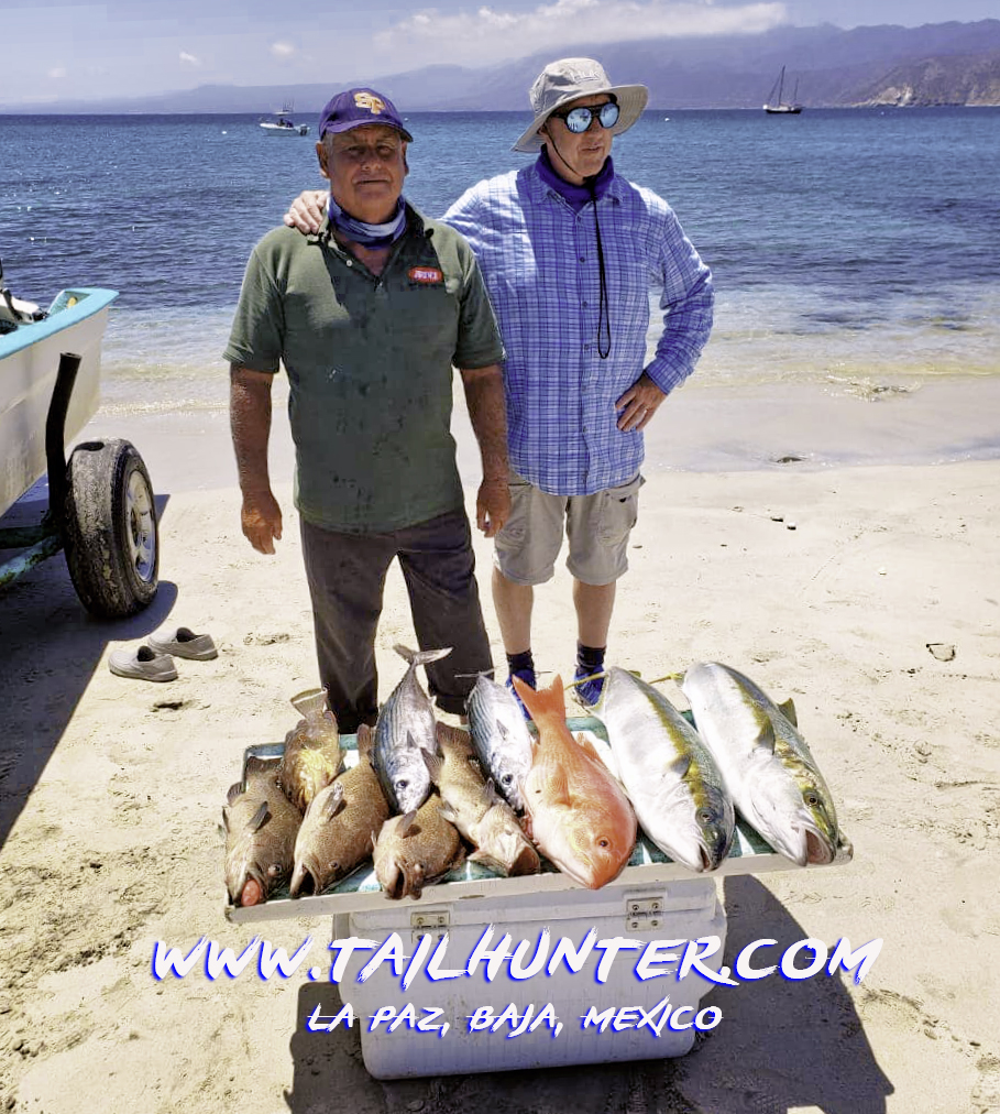 Our Salt Lake City amigo, Robert Pettit with his favorite Captain Arcangel and a crazy variety of fish including two big yellowtail, cabrilla, white bonito and a big pargo as well.