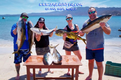 Nick and Brandy Wilks with Kim and Brett Kopchitz on the beach at Muertos with a nice day’s catch. Everyone is from Detroit.