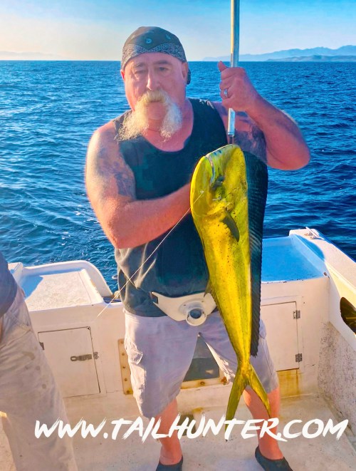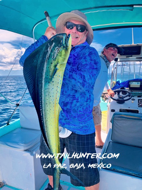 For our Tailhunter La Paz fleet…well, dorado are 90% of the catch. Fun-sized fish running about 10-15 pounds mostly with some bigger bulls mixed in. Plus there’s still a far amount of billfish…striped marlin and sailfish getting hooked. All the fish this week were released or broke off as they were all larger fish on lighter tackle.