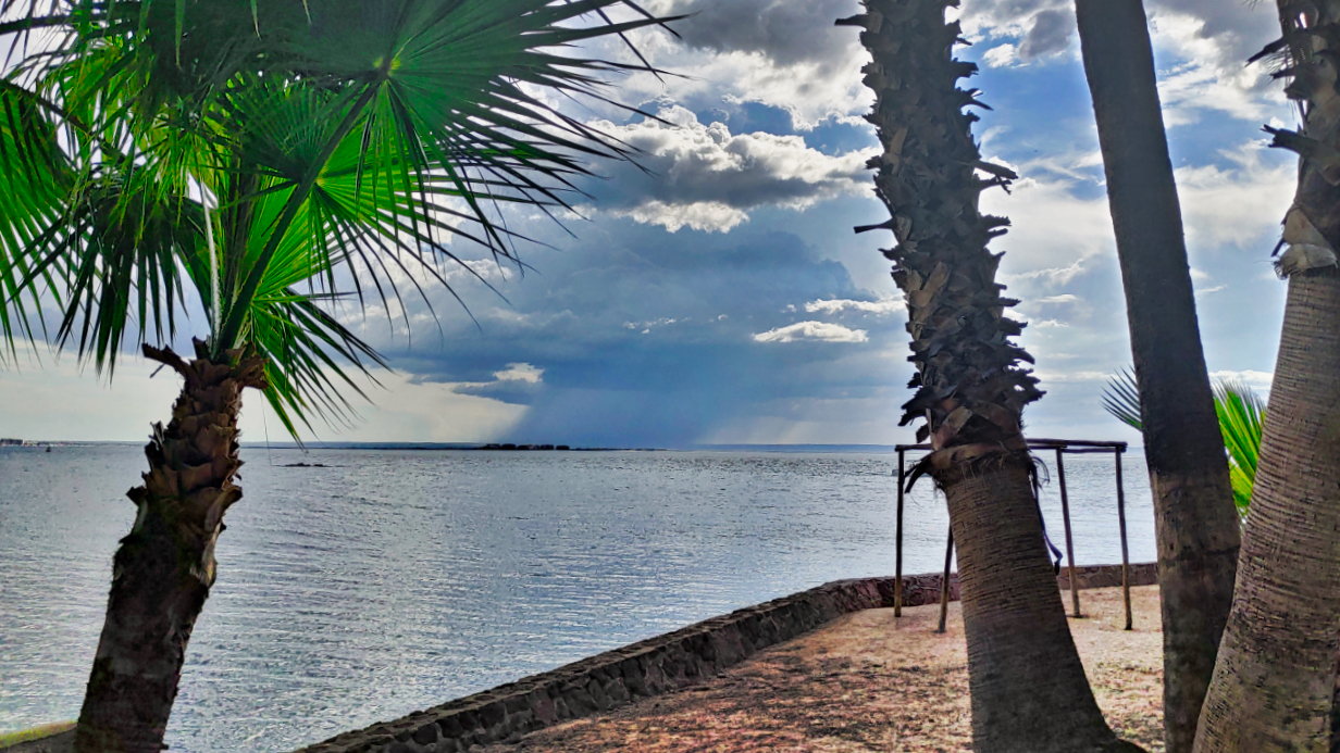 Some of the thundershowers were torrential and caused widespread flooding even though the rain storm might have only been for 15 minutes to an hour. And, as often happens with our rain, it can rain really hard in one spot, but down the highway or across the bay, they are dry and in sunshine. Or you can be out on the water in sunny weather, but you can see columns of rain in the distance. Sometimes, it’s so hot, you actually want to drive the boat through the rain to cool off.